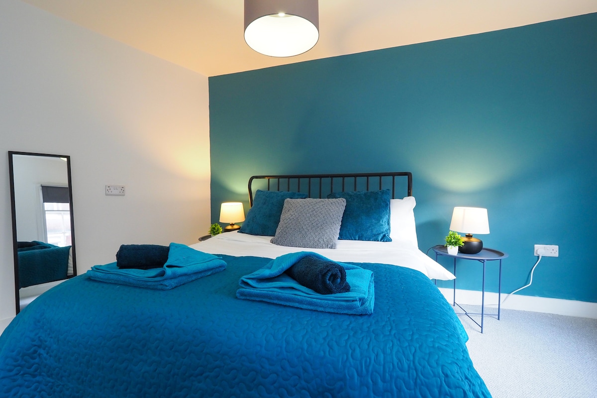 Luxury 2-bedroom apartment, ground floor, home feeling in the heart of Derby City Centre, quiet area, ensuring a relaxing stay. Perfect for business travellers, professionals, contractors, families and couples. - Elegant Design, open-plan - Smart TV, Netflix, Prime Vide, apps - Premium & luxurious beds, Sofa bed - Fully Equipped Kitchen & Contemporary Dining - Stylish Bathrooms - Laundry machine, pressing iron - Secured Building - FREE PARKING in front of the apartment! - Ground floor apartment