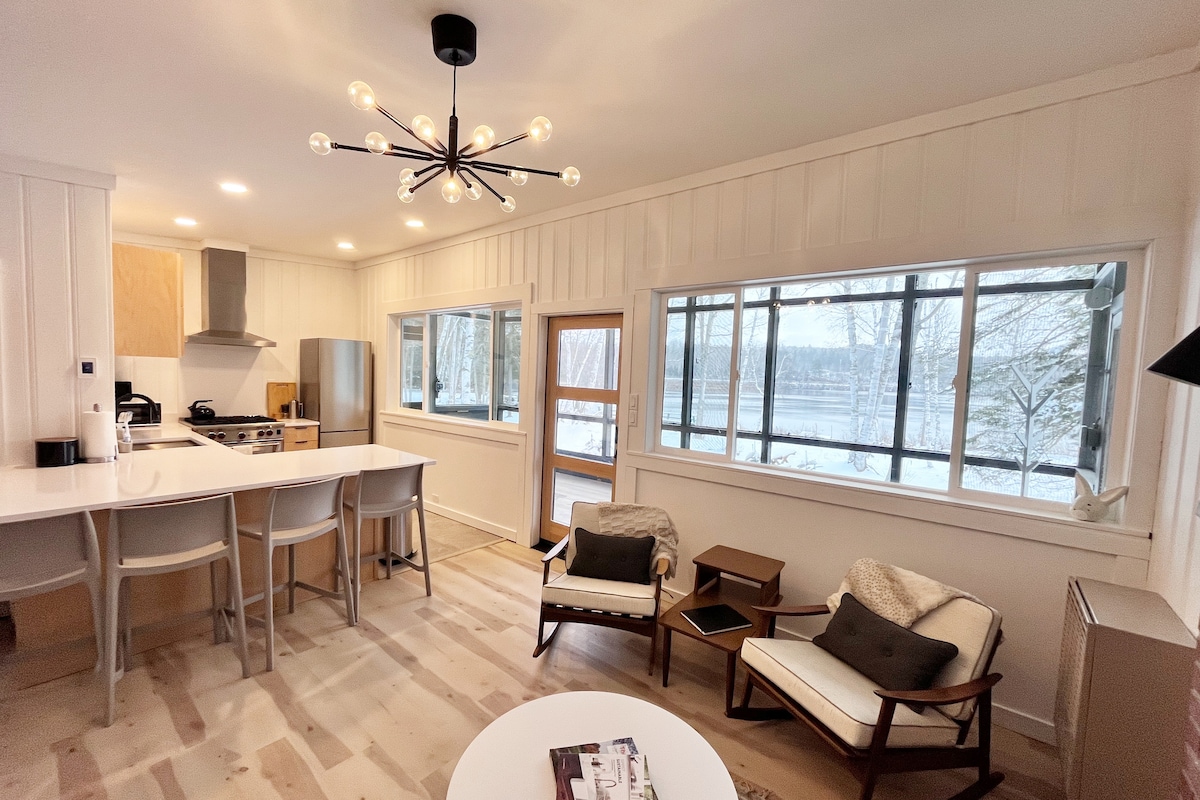 Aquesta casa de nova construcció es troba a la nostra propietat de 90 hectàrees. Està envoltat d'un hort, una vinya i un bosc. L'entorn pintoresc i natural és perfecte per a parelles, viatgers solitaris o famílies. Es pot practicar esquí de fons, córrer i fer senderisme a la propietat. Les pistes d'esquí de baixada de Bromont i Sutton estan a 35 minuts en cotxe. Jay Peak, Vermont, es troba a 1h15 en cotxe. Les carreteres rurals dels voltants ofereixen unes meravelloses passejades en bicicleta.