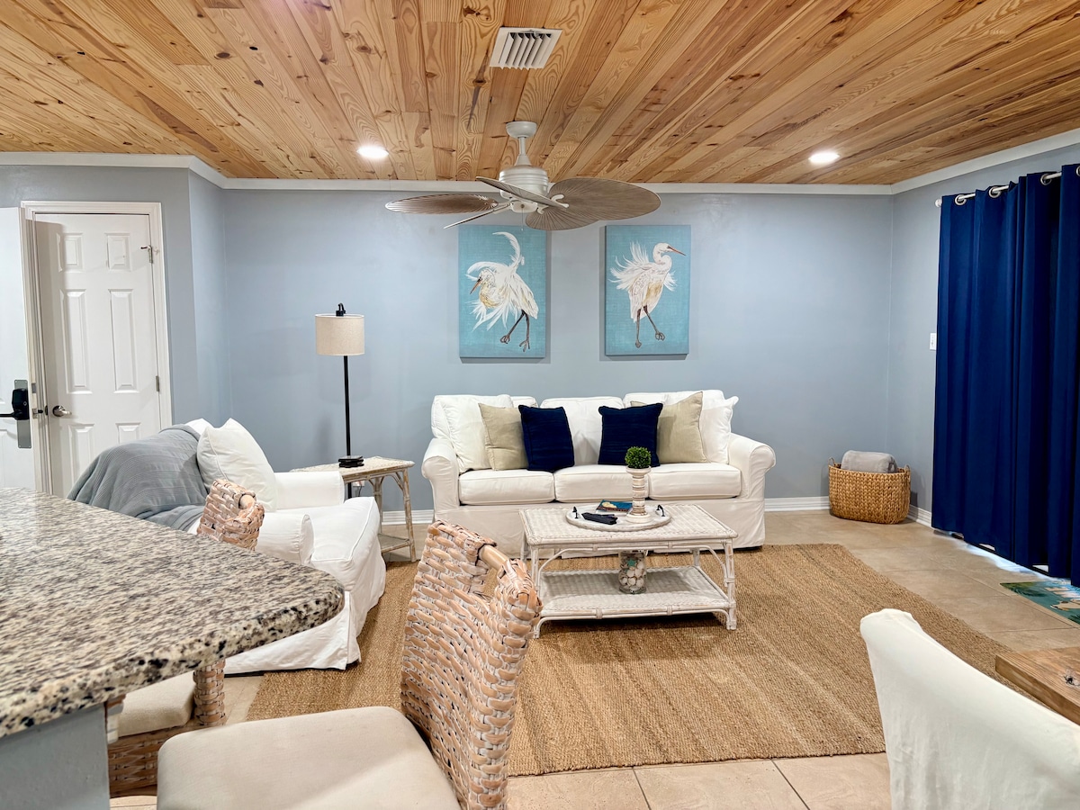 Fes les maletes i ves al The Laughing Seagull, a la impressionant Costa Esmeralda de Florida. Aquest apartament de 2 dormitoris i 2 banys, totalment moblat i amb un estil chic costaner, té capacitat per a 6 persones i t'espera amb els braços oberts. La platja és just a l'altra banda del carrer, perfecta per a passejades matinals o per agafar unes quantes onades, mentre que el moll d'embarcacions a l'altre costat del complex fa que sigui fàcil deixar anar una línia i gaudir de la pesca del dia. La cuina totalment equipada és ideal per cuinar plegats i crear records familiars inoblidables després d'un dia al sol.