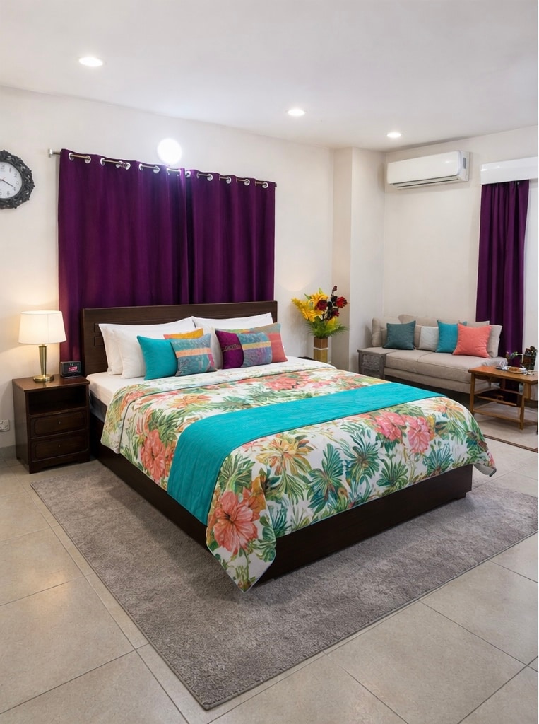 Gaudeix de l'elegància moderna i de la màxima comoditat en aquest nou pis de tres dormitoris en un dels barris més elegants de Dhaka, Banani. Amb bany privat, una sala d'estar elegant, una cuina totalment equipada i un balcó privat, aquest refugi ofereix fàcil accés als millors restaurants, cafeteries, centres comercials i centres de negocis. Gaudeix de wifi d'alta velocitat, entreteniment intel·ligent i seguretat les 24 hores per gaudir d'una estada sense problemes. Reserva ara i fes que la teva estada a Dhaka sigui molt més serena i inoblidable.