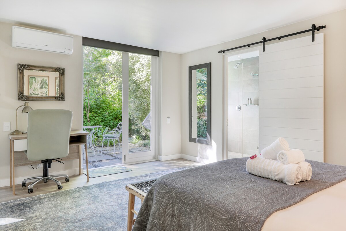 Nestled within a lush, forest-like garden, the serene one-bedroom cottage offers a perfect retreat for those seeking romance and reflection. Surrounded by the distinctive fynbos, guests can immerse themselves in the tranquility of nature, savoring the fresh air and the symphony of natural sounds. Its proximity to the walking trails of Table Mountain and the vibrant Kloof Street restaurants ensures a harmonious blend of peaceful seclusion and convenient access to local attractions.