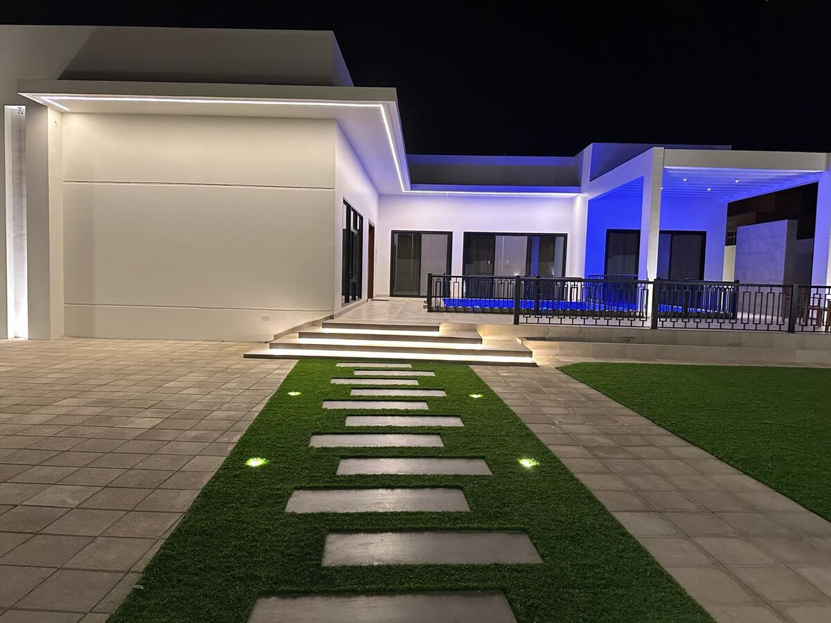 Relaxa't i relaxa't en aquest espai tranquil i elegant...Una casa unifamiliar elegant i moderna amb jardí i balcó amb vistes a la laguna. Un lloc on pots gaudir dels teus esmorzars i sopars i de les teves begudes a l'Havana Resort, a prop de la marina, de platges impressionants, d'una comunitat encantadora i d'una varietat d'activitats 🚤🪂🧘♀️esportives🚴♀️🏊🎾 i instal·lacions. La ubicació és a prop de moltes de les atraccions turístiques de Salalah ⛰️🛶🛕 i ofereix una experiència única d'estil de vida luxós i modern.