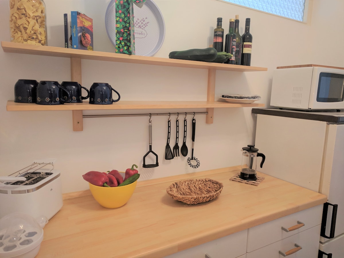 We welcome everyone to our accommodation! Our location offers green idyll as well as a close connection to the city life. Offering a separate entrance, we grant you a high degree of privacy in case you are looking for it. You even have an own bathroom and a fully-equipped kitchen for your convenience. Our accommodation is provided to ensure our guests feel secure, comfortable and at home while staying here.