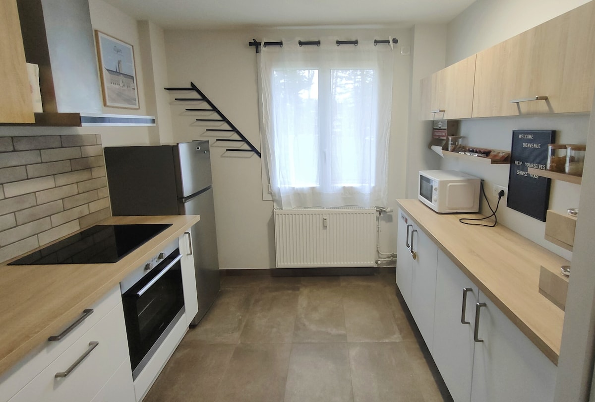 Et donem la benvinguda a La Feuillé! Situat al cor de la capital dels ducs de la Borgonya, a la planta baixa d'un condomini tranquil, el pis t'encantarà amb la seva elegància. Estaràs al centre de la ciutat, a prop de tots els serveis i punts d'interès. L'apartament té 2 habitacions grans amb uns volums preciosos, acompanyades d'un bany amb vàter independent i una cuina totalment equipada. Esperem que tinguis una bona estada. Hélène i Rémi.