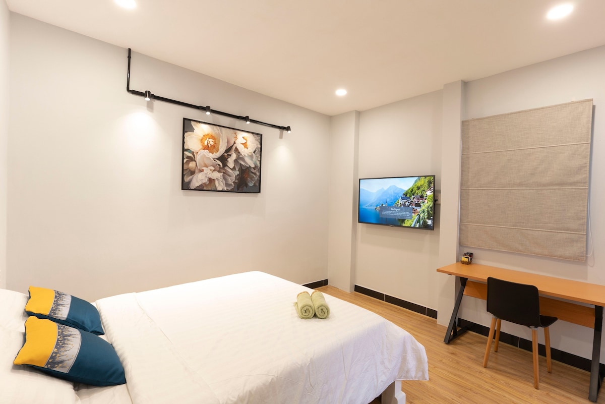 Fundat el 2023, oferim apartaments amb serveis d'alta qualitat curts i llargs situats just en un carrer concorregut amb cafeteries famoses, restaurants, Circle K i botigues pràctiques a prop i a només uns minuts a peu del carrer Bui Vien, Tao Dan Park. Rentable en comparació amb els hotels, oferim 1 apartament amb serveis BR amb privacitat, estil modern, cuina, balcó, porta i finestres insonoritzades, espai d'escriptori per treballar, jardí al terrat, ascensor, neteja regular i les comoditats d'una "casa des de casa".