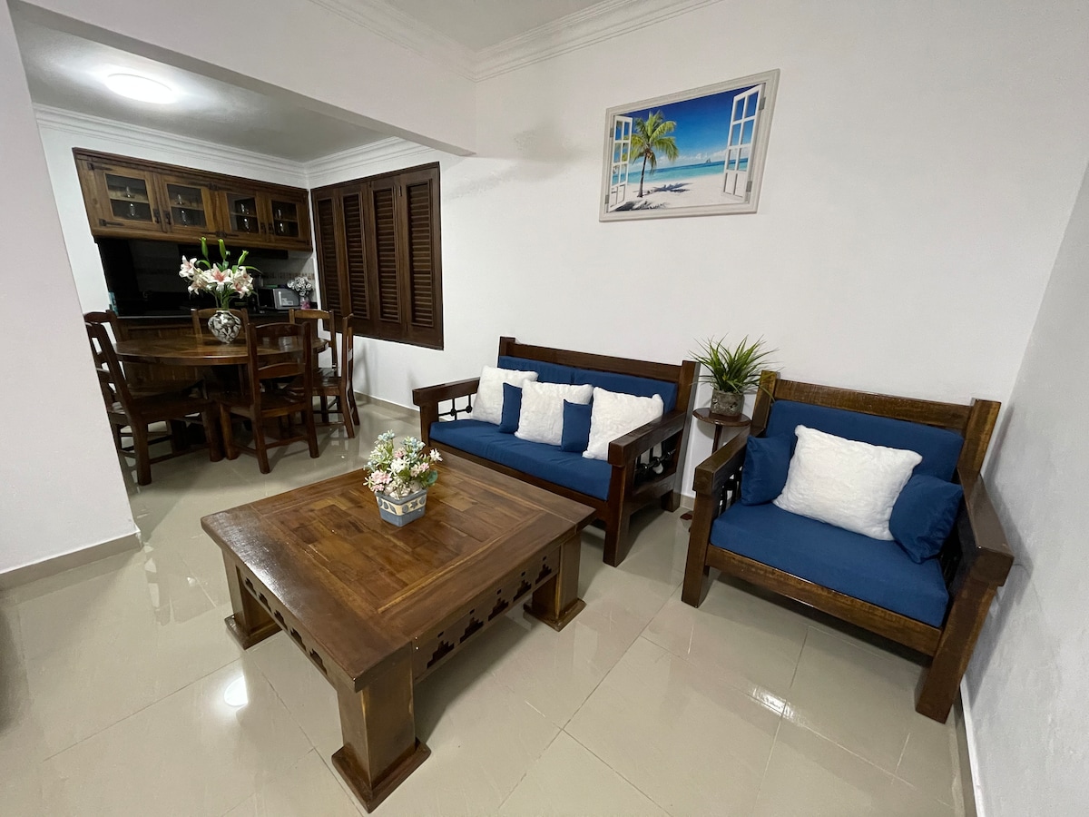 Privilegiada, cotizada y muy codiciada zona del malecón. Impresionante vista al Mar Caribe ! 62 m² de construcción; seguro, intimo, elegante, decorado con simplicidad, y elegancia moderna. Todo lo necesario para una cómoda estadía corta o larga. Internet full, cómodo colchón, cocina equipada, área de trabajo, estacionamiento privado y seguro Servicio de lavandería y delivery, fácil acceso a transporte público y privado. Cerca: Aeropuerto Internacional y la famosa playa de Boca chica
