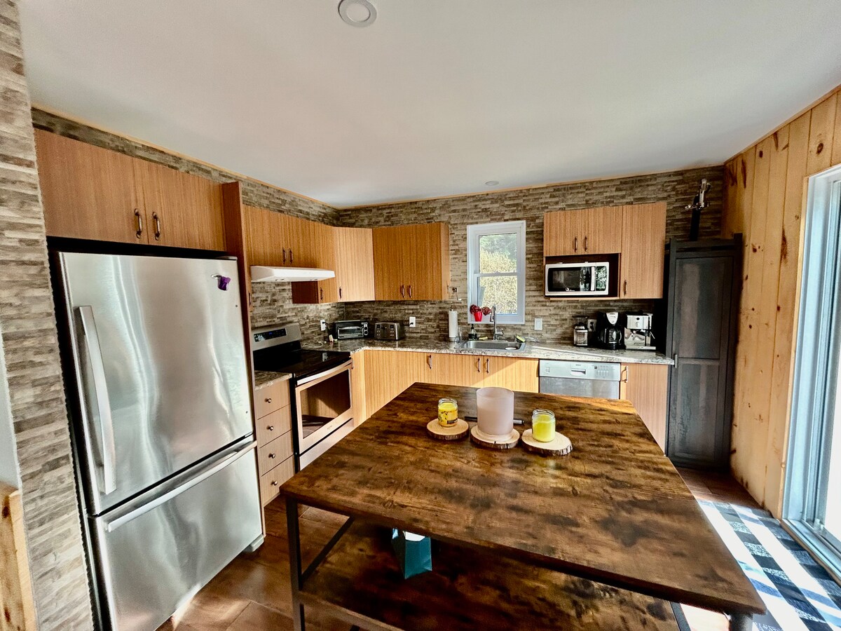 Et donem la benvinguda al teu acollidor refugi situat al cor de West Burke, Vermont! Aquesta encantadora caseta de luxe ofereix una escapada serena amb vistes impressionants de la muntanya Burke i la natura que l'envolta. La caseta disposa d'una sala d'estar ben equipada, perfecta per relaxar-se després d'un dia d'aventures a l'aire lliure. Tant si t'acurruca amb un bon llibre al costat de la llar de foc com si gaudeixes d'una tassa de cafè a la terrassa amb vistes al tranquil estany i a l'hort de pomes, la relaxació és natural.