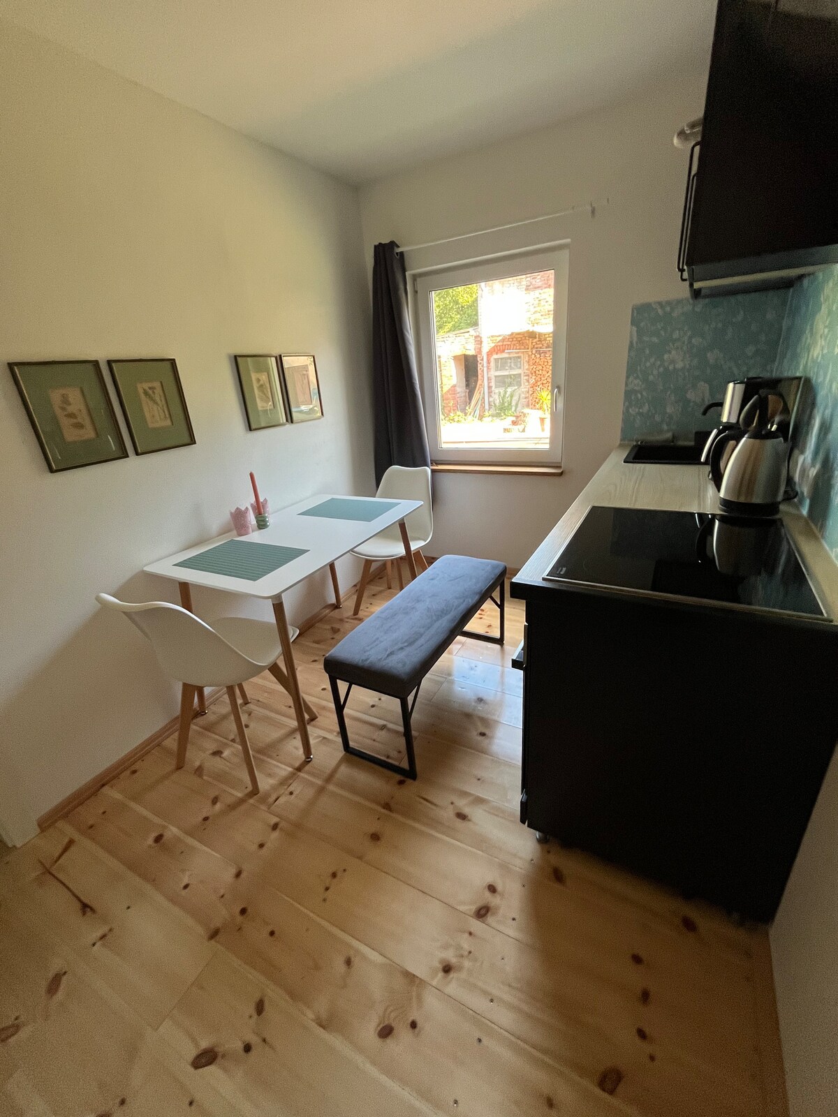 L'apartament totalment moblat amb terrassa està situat al nostre pati de tres costats. Tens un apartament independent de 40 m². Els 2 llits tenen 1 m d'ample i 2 m de llarg, 1 sofà llit és de 2×2 m i és molt còmode com a tercer llit. Fes senderisme per les vinyes de Seußlitz, relaxa't a la piscina natural de Goltzscha a l'estiu i aprofita el carril bici de l'Elba, a només 400 m de distància. perquè vulguis tornar-hi. Hi ha places d'aparcament i 2 bicicletes disponibles de forma gratuïta. Les teves bicicletes estan segures al nostre pati.