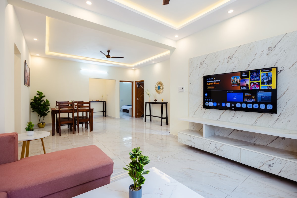 Clam 1-Bedroom Retreat ☀️ Experience home away from home in our breezy 1BHK with stunning views, ideal for professionals and families. Located near Infosys & Wipro, enjoy modern amenities: washer, fridge, microwave, stove, kettle, coffee maker, Wi-Fi, 55” smart TV & table tennis. Pet-friendly, gated society for added security. Unwind on the balcony with panoramic views. Book now for the perfect mix of comfort, convenience & tranquility!