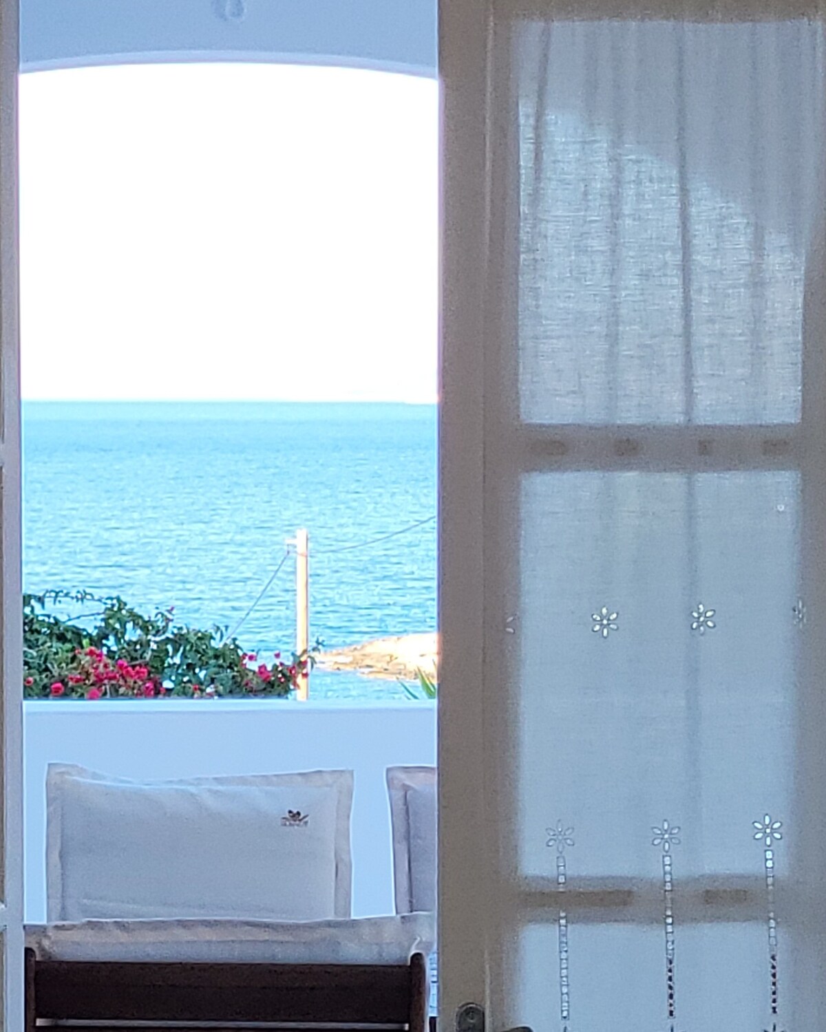 A pocs passos de l'Egeu, aquest estudi renovat amb estil combina l'encant de les Cíclades amb el confort modern. Situat al costat del nostre edifici davant de la platja, ofereix una vista lateral al mar i accés immediat a la sorra. A només 10 metres de l'aigua, gaudiràs de gandules i para-sols reservats gratuïts. Forma part de les cases de platja de Santorini i està situada en una zona tranquil·la, perfecta per a unes vacances relaxades i privades. Un santuari tranquil lluny del soroll, a la vora del mar.