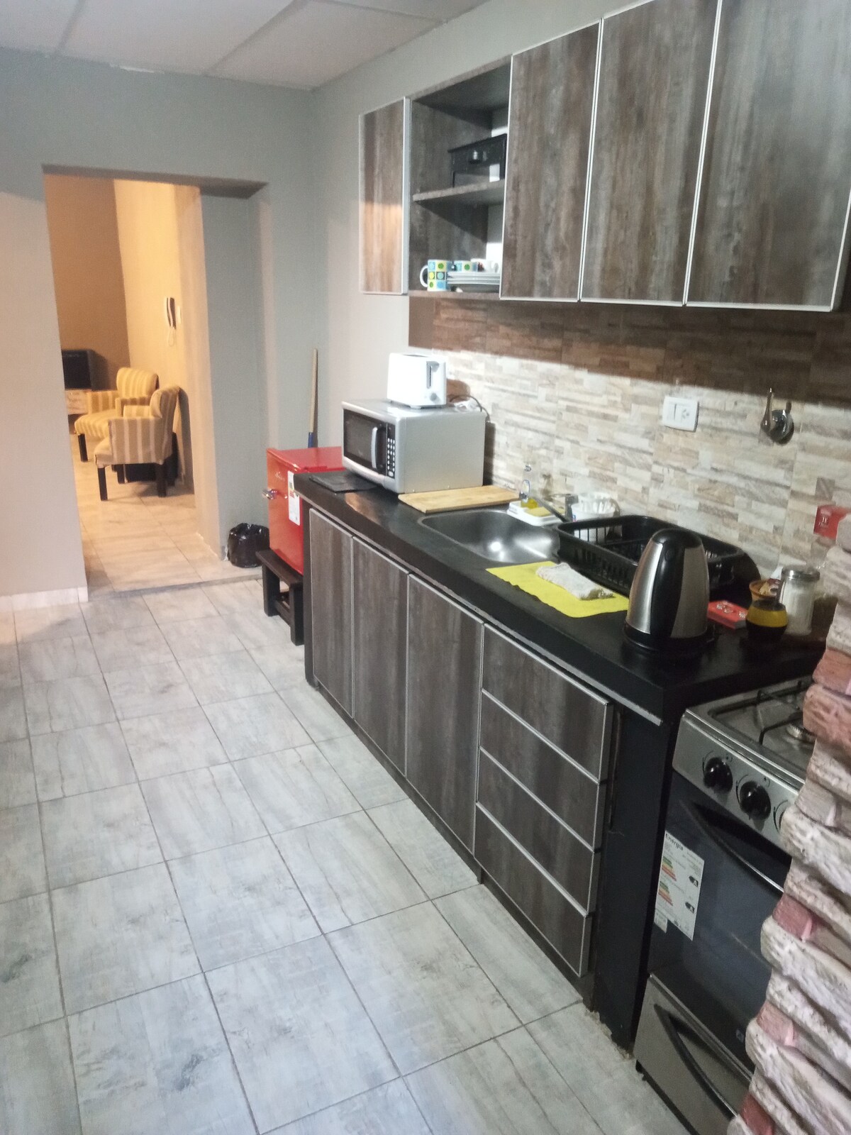 Porta tota la família a aquest allotjament fantàstic. A pocs carrers del centre de Trelew i a prop de la zona hospitalària, hipermercats i restaurants. Una zona segura i tranquil·la en un apartament espaiós, amb tots els serveis: disposa d'una gran zona de cuina-esmorzar, una sala d'estar i 2 dormitoris. T'acollirem amb molt de gust i ens esforçarem per oferir-te la millor experiència d'allotjament a la nostra ciutat.