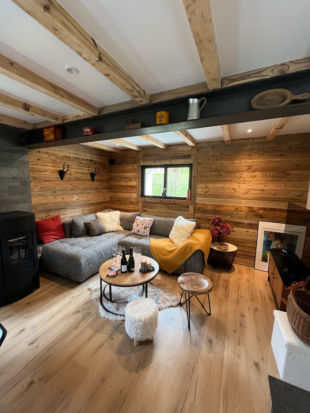 Afegeix troncs a una llar de foc amb una enorme llar de foc de pedra i reclina't en un sofà rústic de fusta. Contempla els finestrals al bosc alpí que envolta un xalet autèntic. Torna de les pistes i relaxa't en una sauna de luxe en un bany elegant. Dormitori de 25 m2 amb llit doble, magatzem, armari autèntic. Una sala d'estar càlida i espaiosa amb finestrals dobles amb vistes a la muntanya Blanc i llar de foc. I un sofà llit convertible en 2 llits individuals. Cuina còmoda i totalment equipada. Bany de granit amb dutxa i sauna per a 3 persones. Una terrassa davant del bosc i el rierol ( amb visita freqüent dels cérvols - veure fotos ), amb font i vistes impressionants del massís de Mt Blanc. El xalet és una construcció individual totalment disponible i reservada per als hostes. També ho són la terrassa i els voltants ( un riu petit, un pont privat i accés al bosc ). Disponible per a qualsevol dubte. A la vil·la de Coupeau: xalet autèntic al bosc sobre els Houches amb vistes excepcionals del massís del Mont Blanc. A la vora d'un petit torrent amb cérvols A 5 minuts amb cotxe de Les Houches, a 10 minuts de Chamonix i a 1 hora de Ginebra. Accés fàcil per carretera al xalet. A 2 km de Les Houches i a 10 km de Chamonix. Aparcament just darrere del xalet Un xalet antic totalment reformat. Amb tota la comoditat moderna ( inc. Sauna per a 3 persones) i una decoració superior. Una vista única de la cadena de MontBlanc. El xalet es troba al poble de Coupeau, al bosc de Les Houches, amb unes vistes excepcionals del Mont Blanc. Està a 5 minuts en cotxe de Les Houches, a 10 minuts de Chamonix i a una hora de Ginebra.