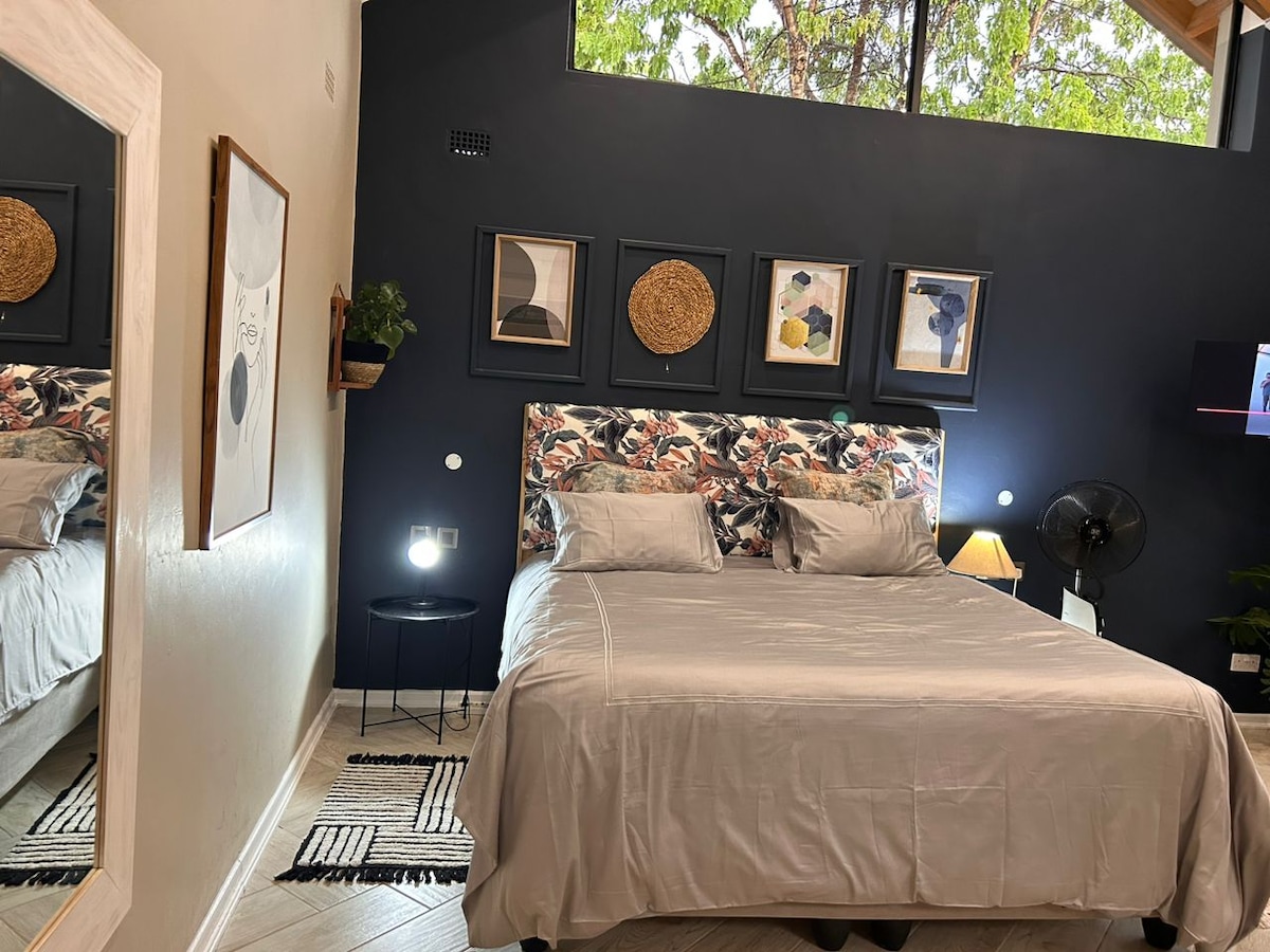 Un nou apartament estudi amb mobles elegants i un jardí privat. Situat a la moderna Newlands, a prop del districte financer i a poca distància de Borrowdale, el centre de l'estil de vida de Harare. L'estudi es troba en una propietat privada, un jardí exuberant i una preciosa piscina. A poca distància a peu de les botigues Newlands o Eastlea. Ens encanta tenir hostes i esperem que vinguis a allotjar-te! Servei d'àpats amb cuina senzilla. Tenim sistemes de suport d'energia solar i de generador, així que WIFI i llums les 24 hores.