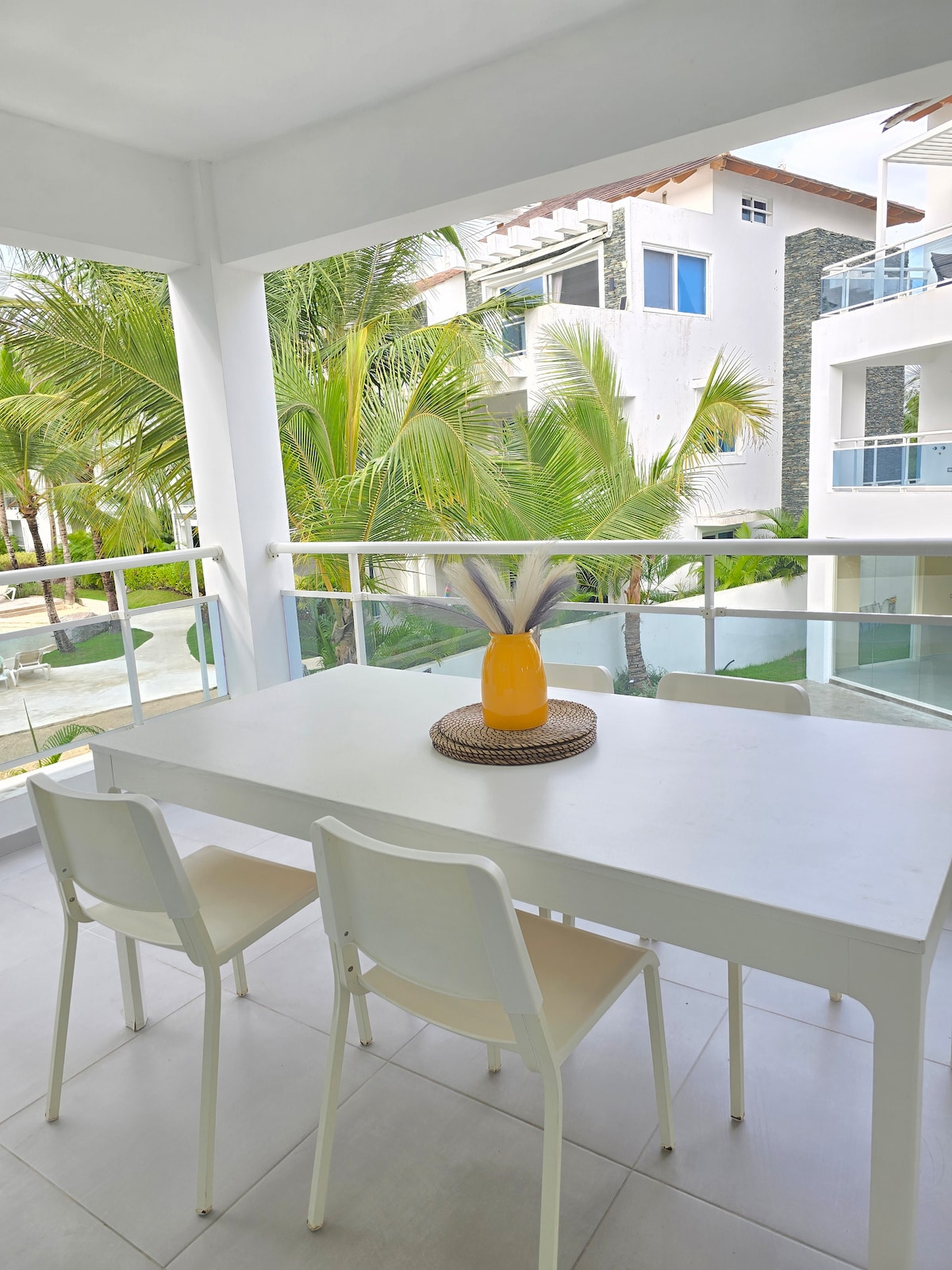 A solo 1 minuto caminando de la playa privada (visible desde la puerta del apartamento), ubicado en área más exclusiva de Bayahibe, Dominicus. Dentro del exclusivo resort Cadaqués: 3 piscinas, muelle privado, parque acuático, restaurante, bar-café, jardines tropicales, Cama king cómoda y sábanas de 300 hilos, A/C de 24,000 BTU, silla columpio (hasta 350 lb), cocina equipada, WiFi rápido y Smart TV, libros, juegos de mesa. Todo listo para que vivas una estadía inolvidable y cómoda en el paraíso!