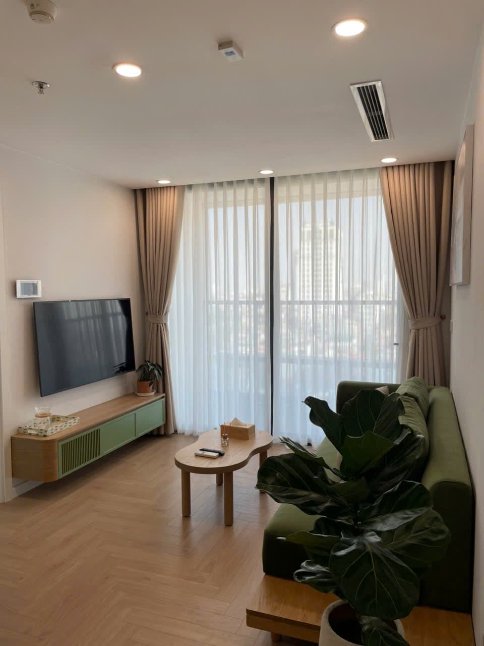 Pis modern i elegant a The Ninety Complex, 90 Đường Láng, Đống Đa, Hanoi. A la cantonada del 10è pis, ofereix vistes panoràmiques de la ciutat i molta llum natural. Amb un tema verd salvia tranquil i mobles de primera qualitat, ofereix un retir serè. Gaudeix d'unes comoditats increïbles: piscina, gimnàs i l'estil de vida local. Situat a prop de les universitats (Universitat de Medicina de Hanoi, Acadèmia de Banca), hospitals (Bạch Mai), metro i llocs històrics, és perfecte per a una estada còmoda i relaxant a Hanoi.