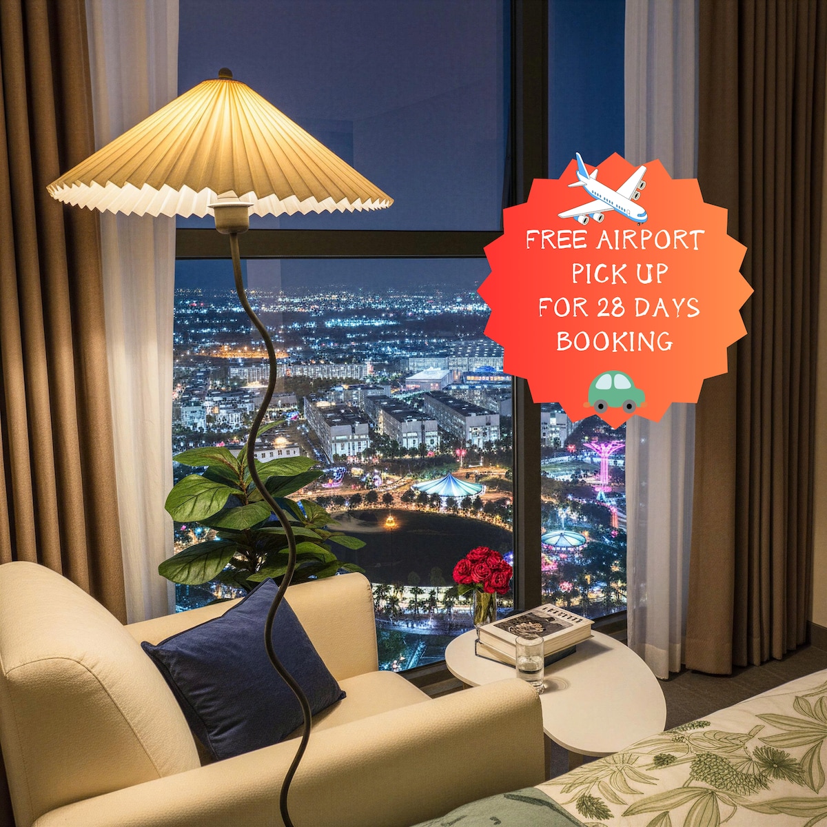 Des de l'apartament des de l'aeroport de Tan Son Nhat hi ha 9,7 km i 45 minuts arribarà al pis . Des del pis fins al centre del districte 1 hi ha 90 minuts. Accedeix a qualsevol lloc quan la teva família s'allotgi en aquesta ubicació cèntrica. Hi ha un parc de mes fresc. 36 hectàrees Hi ha un mar de sorra real. Hi ha una caseta de fulles de barbacoa. Hi ha un supermercat a l'edifici on t'allotges . Hi ha autobusos elèctrics vinbus de forma gratuïta per tota la zona . 20phut 1 ride Type .GP1 Preu de l'entrada: 7000 vnd per persona.