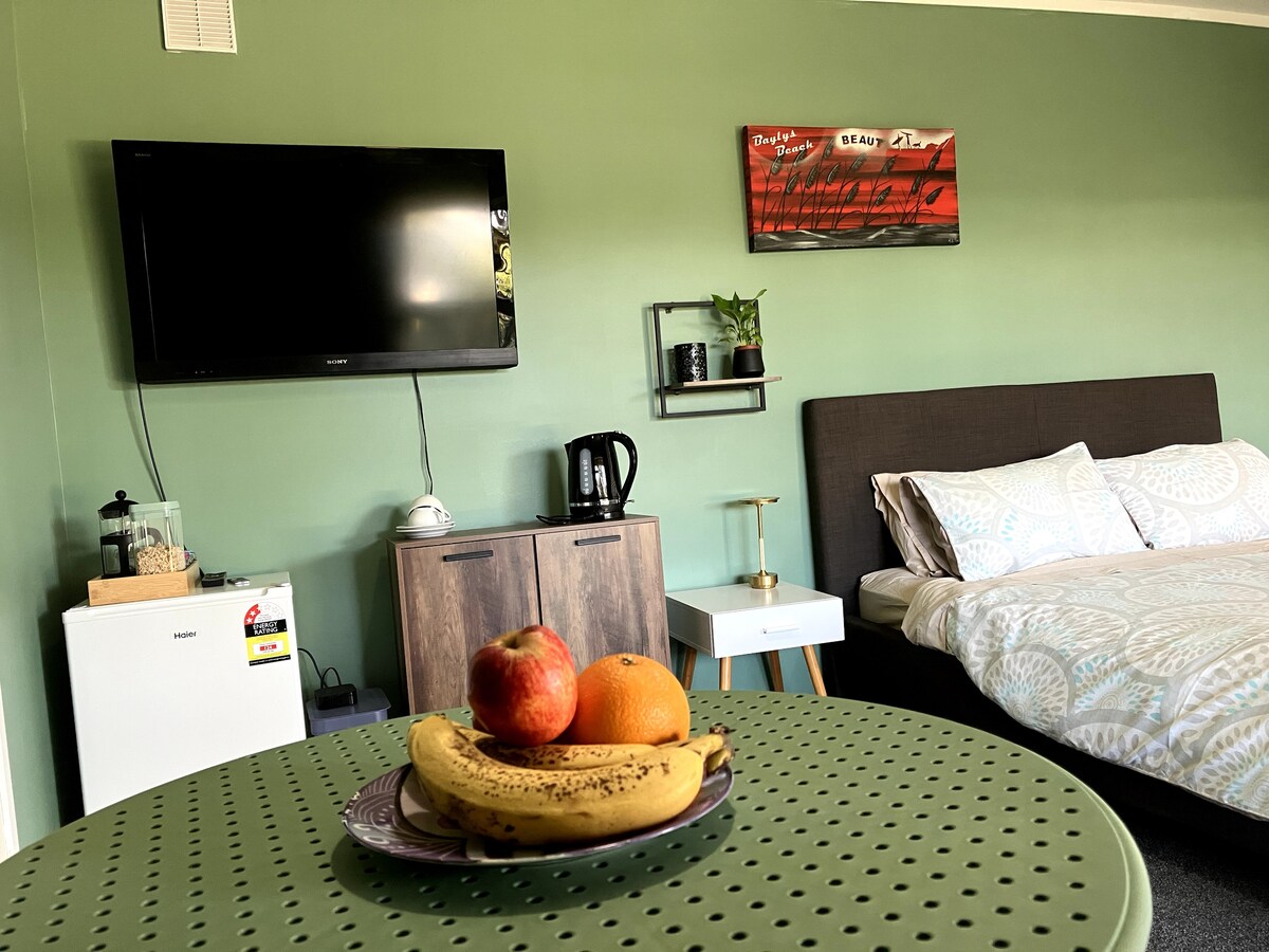 Suite moderna i independent a la planta baixa (dormitori i bany) amb una agradable zona exterior privada. A cinc minuts a peu de la impressionant platja de Ripiro, la platja més llarga de Nova Zelanda. Llit de matrimoni còmode, te i cafetera, esmorzar continental, wifi, televisor. Puja per emportar-te des de Sharkys per la carretera o de Dargaville (a 10 minuts en cotxe). La base perfecta per explorar aquesta zona increïble. Els amfitrions amables, en Gary i Yoko, garantiran la teva privacitat.