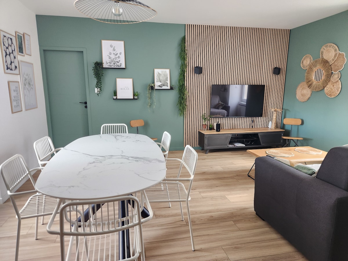 Et donem la benvinguda al nostre ampli i còmode apartament, ideal per a un viatge de negocis, una escapada o una estada prolongada, just al centre d'Angers. 📍Ubicaciócèntrica Tot és a poca distància a peu, perfecte per descobrir la ciutat o desplaçar-se fàcilment. - Estació SNCF d'Angers a 5 minuts a peu - Château d'Angers i Place du Ralliement a 10 minuts a peu - Centre de la ciutat, botigues, restaurants i transport a les immeditats. Aparcament: Aparcament públic a prop (a 2 minuts a peu)