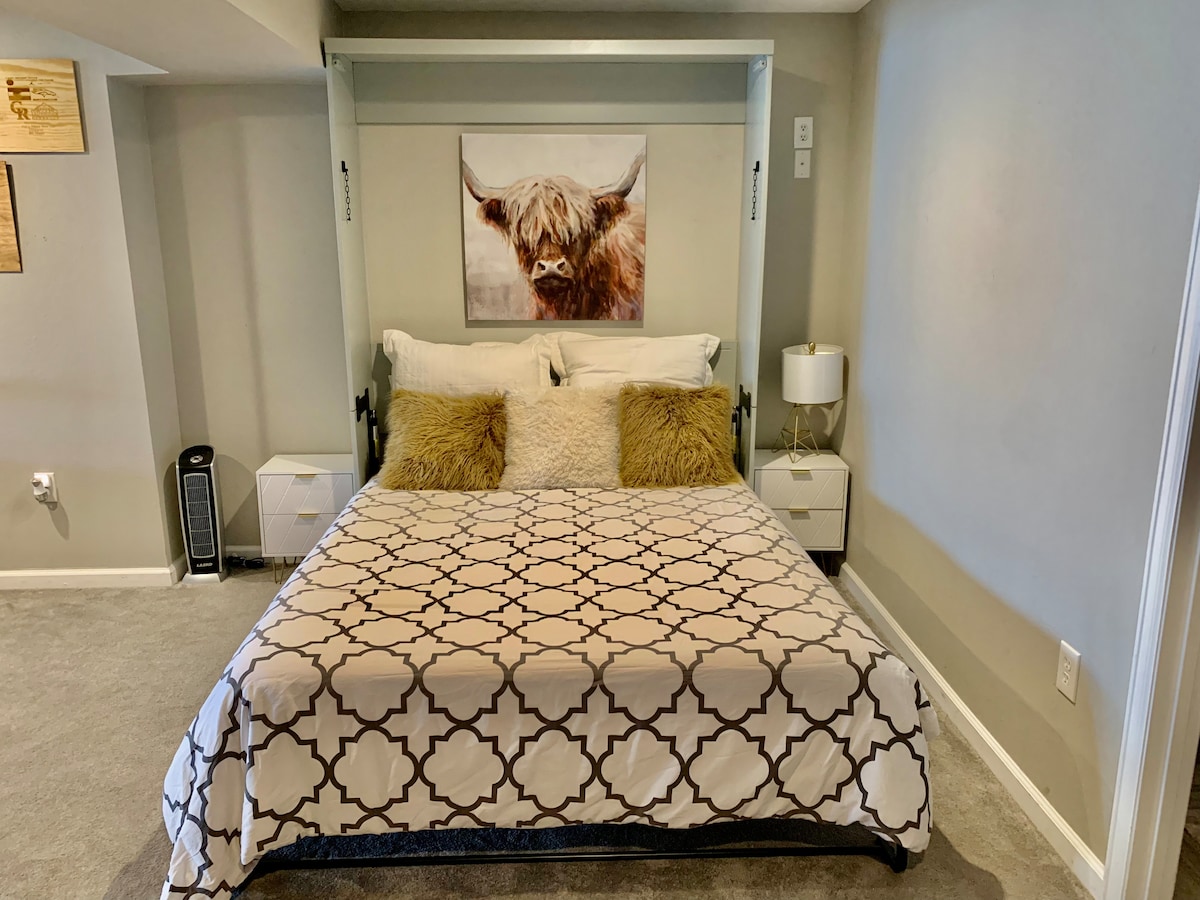 Pis soterrani complet amb entrada privada. 2 dormitoris grans, un bany . Cuina petita/barra de begudes, nevera de mida completa, microones, freidora d'aire, torradora, cafeteres (keurig i degoteig), paella elèctrica i graella de gas a l'exterior al pati i un foguer amb cadires en una taula. Taula de billar de mida completa. Bugaderia disponible, aparcament exclusiu. No cal que comparteixis l'espai amb ningú, és tot teu. Una pista de pickle ball. 4/20 amigable. No és una bona opció per a nens menors de 5 anys.