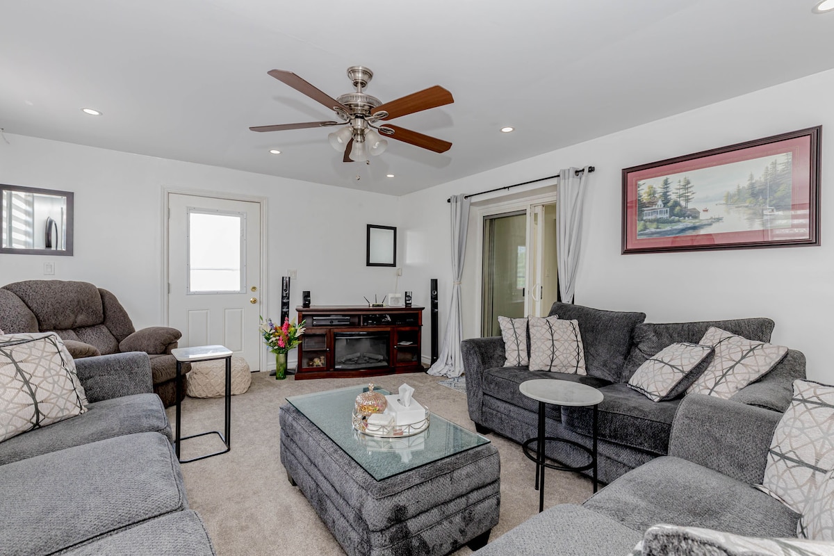*Click the ❤️ Save button in the top-right corner to easily find us again before your dates are booked* Enjoy your stay in Spacious 5BR, 3.5BA retreat with HGTV-style open layout, featuring a deck balcony surrounded by color changing maple trees, fenced backyard with charcoal grill, patio deck, and outdoor seating, executive office, fast Wi-Fi, 1-car driveway, and indoor gym with treadmill, weights, and yoga mat. Game room features basketball arcade. Minutes from downtown Toronto, airport.