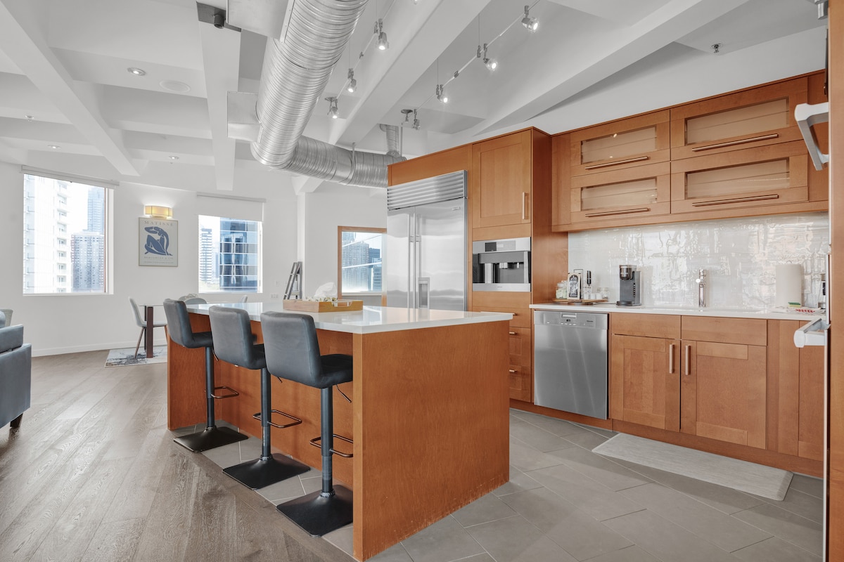 Entra en un loft de luxe d'estil industrial al cor de l'Ice District d'Edmonton. Aquesta espaiosa suite de 2 dormitoris i 2 banys té sostres alts, mobles de disseny i un disseny obert ideal per a persones solteres, parelles o grups. El dormitori principal ofereix un llit king size còmode. Gaudeix d'un accés independent fàcil, un aparcament subterrani segur i una ubicació ideal per a anar a peu a tot arreu: a prop de Rogers Place per als partits i concerts dels Oilers, a prop de restaurants i locals nocturns i de tot el que ofereix el centre de la ciutat.