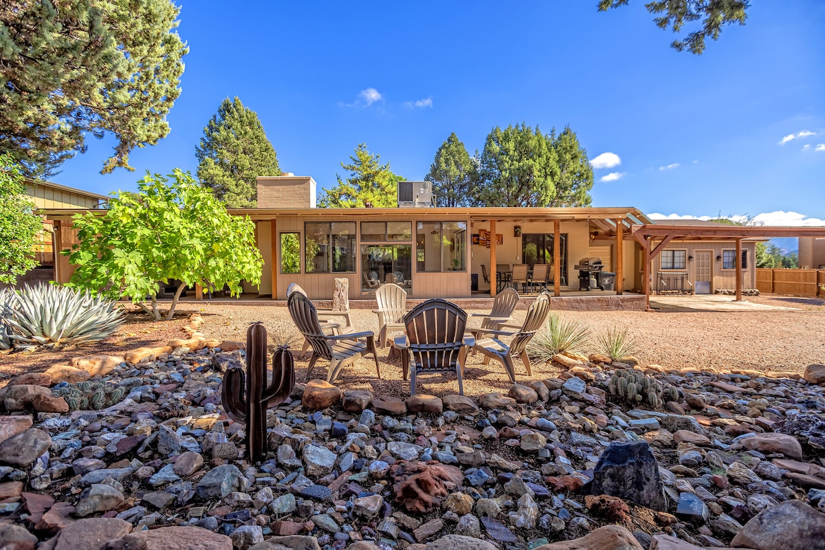 Reserva de pressa! Ubicació perfecta al centre de West Sedona, a prop de les millors rutes, restaurants i llocs de lloguer de bicicletes/quads per explorar Sedona! Barri tranquil amb espai respecte als veïns que et permet sentir-te a gust i allà on vols estar. Dos dormitoris al pis de dalt i un dormitori al pis de baix: perfecte per a famílies amb un munt de jocs! A poca distància a peu de Sugarloaf Trailhead i amb vistes a Thunder Mountain, AQUEST ÉS EL LLOC PERFECTE per reunir-te amb els teus amics i la teva família!