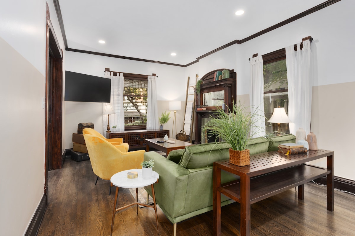 Gaudeix de la ciutat de les fonts en una casa històrica luxosament reformada al cor de la ciutat. Aquesta casa contemporània, però encantadora, vintage, ofereix una escapada agradable en un barri encantadorment tranquil situat entre les emocions del centre de Kansas City i Union Hill. Gaudeix relaxant-te al pati privat del darrere sota l'arbre de l'ombra durant el dia i escalfa't al costat de la foguera sota les estrelles a la nit. Aquest bany de 4 dormitoris i 3 banys és perfecte per a 2-8 persones.