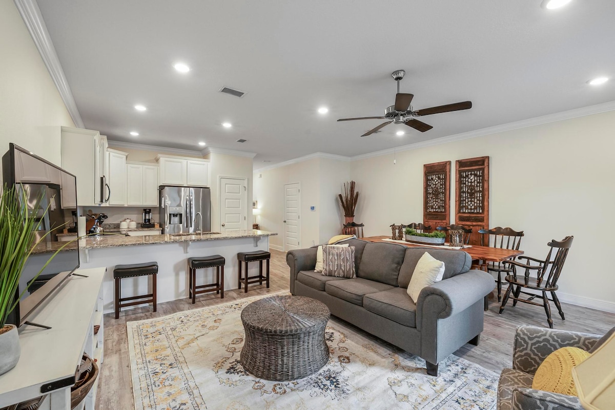 Relaxa't amb la nostra neteja a fons, prioritzant la teva comoditat. En un fraccionament tranquil, Brookside ofereix una piscina il·luminada pel sol i pistes de tennis. La acollidora sala d'estar garanteix una estada còmoda. 🌞 Acceptem animals de companyia amb confirmació prèvia. Et donem la benvinguda als teus amics peluts. A només 27 minuts en cotxe de platges de sorra blanca, gaudeix d'un pintoresc viatge de 14 milles fins a la platja de Pensacola o arribar a NAS Pensacola en 30 minuts. No et perdis l'impressionant mosca Blues tots els diumenges al vespre. La teva escapada ideal t'espera!