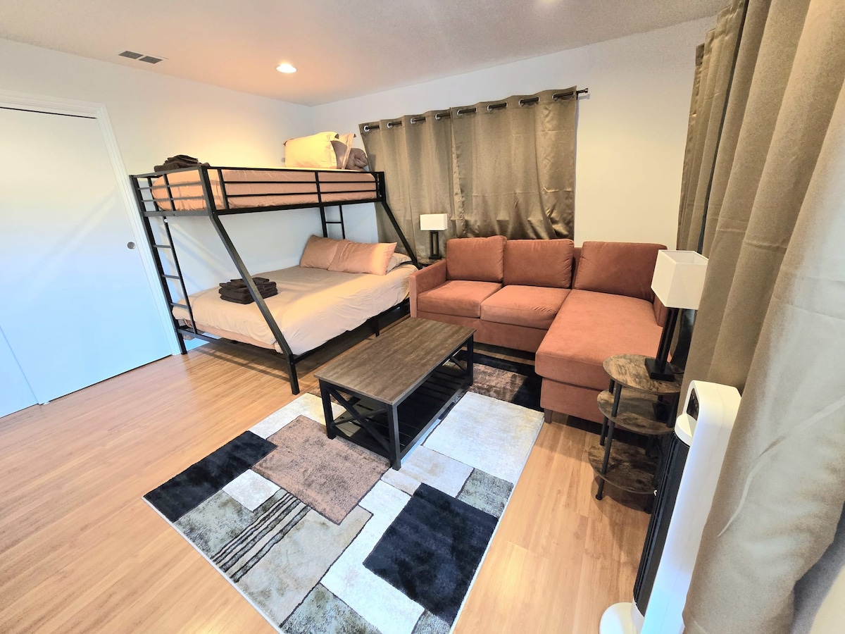 Acollidor estudi a poca distància a peu de Valley Fair i Santana Row! Aquest encantador espai ofereix comoditat i privacitat amb la seva entrada privada. Ideal per a viatgers sols, professionals o parelles, disposa d'un dormitori amb dos llits. La proximitat a l'hospital O'Connor la fa perfecta per a aquells que necessiten allotjament a prop de les instal·lacions mèdiques. L'aparcament a les instal·lacions garanteix la comoditat i el bany complet privat annex garanteix la comoditat durant l'estada.
