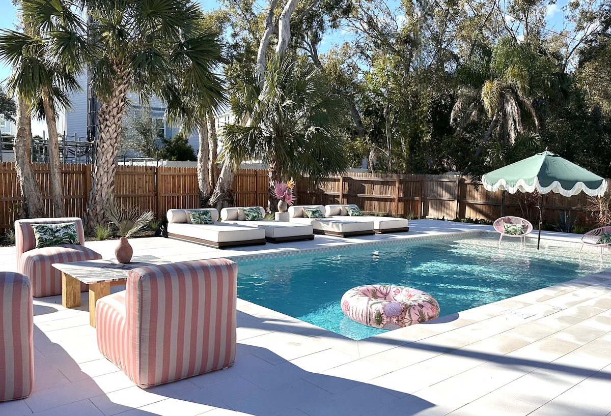 ENVIAM'M UN MISSATGE PER ALS DIES QUE NO VAGIS A FER-HO. Aquesta casa de 2 habitacions i 2 banys és un bungalou acollidor de Florida amb terres de fusta i llum natural en un barri tranquil a la vora del centre de la ciutat. Ampli jardí privat tancat amb piscina, barbacoa coberta i zona per menjar. A pocs minuts del Legacy Trail, el Bay Park, el Payne Park, restaurants, música en directe, bars, teatres, comèdia, òpera, sales d'espectacles, club de comèdia, antiguitats, llocs per fer piragüisme, pistes de tennis i bàsquet, mercat de pagesos, botigues i molt més.