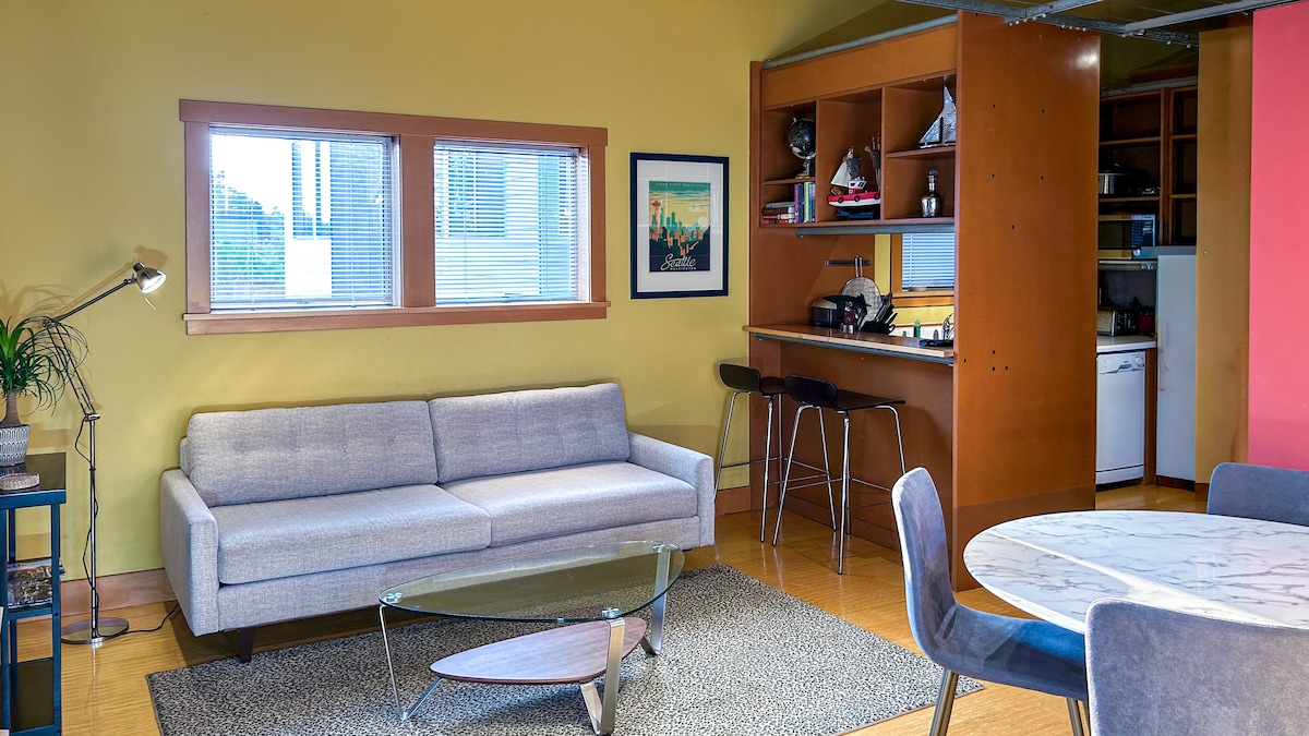 L'Loft Urbà: sostres de 16 peus, accessible per a l'ADA i trànsit amb destinació a Ballard Et donem la benvinguda al teu santuari, un loft ple de llum amb sostres alts i parets de vidre amb mampares per garantir la privacitat. Amb 49 metres quadrats, aquest allotjament és increïblement ampli, obert i còmode: és la base ideal per a les teves aventures a Seattle. És en un carrer molt transitat i hi ha un Airbnb a dalt, així que si et molesta el soroll, tingues-ho en compte. Sense tasques de sortida!