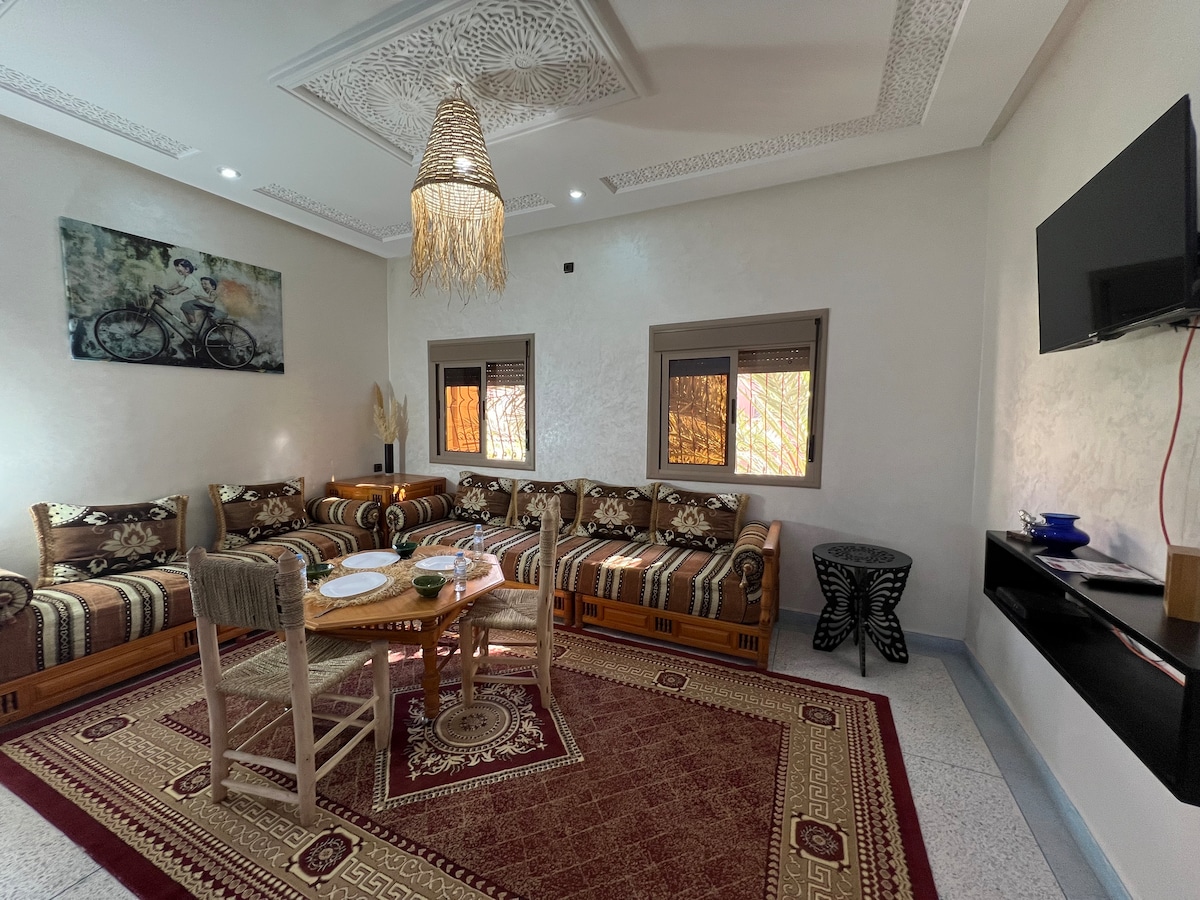 Et donem la benvinguda a Tigminou, la nostra casa de convidats, al cor de les altes muntanyes de l'Atlas. Còmode i espaiós, el nostre apartament ofereix 2 dormitoris/1 bany, una còmoda sala d'estar equipada amb una llar de foc amb vistes als cims nevats i una cuina . Gaudeix de rutes de senderisme, cascades i pobles berbers. La nostra família és aquí per fer que la teva estada sigui inoblidable. Reserva ara i gaudeix d'una escapada màgica a l'Atlas!