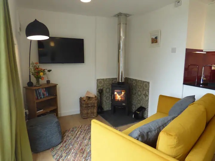Casa rural independent de 2 plantes amb una gran sala d'estar de tres aspectes oberta a la primera planta que ofereix unes vistes increïbles. A la planta baixa hi ha un dormitori amb llit «king size», dutxa i cuina/menjador amb una estufa de llenya, una taula de menjador i dues cadires còmodes amb vistes al camp. Les portes franceses s'obren a una terrassa amb mobles de jardí i una chimenea i una zona de jardí privada amb barbacoa. Excel·lent senyal wifi a tot arreu. Els gossos que es comportin bé són benvinguts -max 2