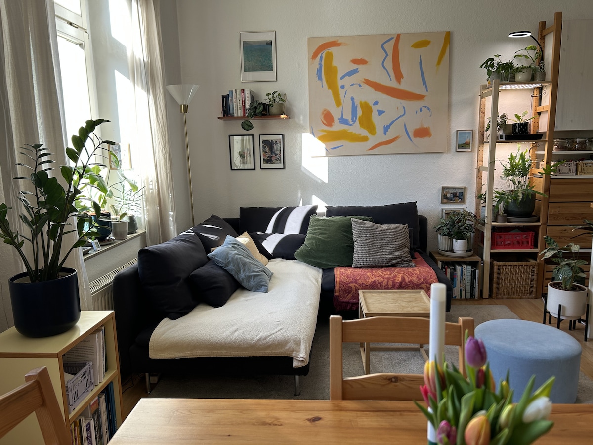 El teu allotjament temporal! 😊 T'allotjaràs al meu apartament d'edifici antic moblat de 2 habitacions per a famílies (67 metres quadrats). A més de l’habitació-saló combinada amb llit (llit de 140 cm) i sofà, hi ha un segon dormitori amb un llit de 160 cm, així com un llit individual de 80 cm d’amplada al somier. Perquè no hagis de prescindir del llit familiar ni tan sols durant les vacances. També hi ha una cuina totalment equipada, una banyera funcional i un acollidor balcó al pati amb una graella de gas.