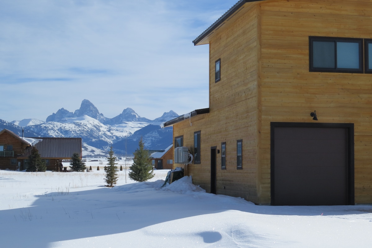 This new contemporary with fiber internet home takes full advantage of its amazing 4-peak Teton view. An expansive deck housing a new 7-person hot tub is separated from the great room only by a wall of glass with two slider doors, providing an indoor/outdoor living area protected from the predominantly westerly winds and shaded from afternoon summer sun. The studio apartment over the attached two car garage offers a separate, quiet workspace.