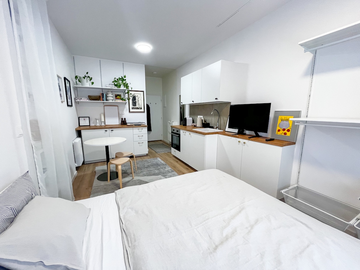 Pis exclusiu acabat de renovar (2021) en un edifici històric del segle XVI amb la millor ubicació al cor del casc antic, a un pas de la Porta de Michaels. Tots els monuments històrics: el castell, la catedral de Sant Martí, la plaça principal, l'ajuntament antic, etc., estan a menys de 8 minuts a peu. El mercat està a 30 passos de la teva porta (7h-22h, cap de setmana fins a les 2.00). Tot l'interior emplea una barreja d'elements històrics amb mobles moderns, decoracions per destacar la rica història de l'edifici
