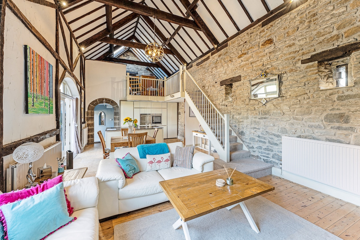 Aquesta preciosa conversió de graner independent ha estat renovada encantadorament, conservant i treballant amb moltes característiques originals sempre que és possible. Amb molt bon gust, moblat amb molt bon gust en tot moment, l'espai d'estar de planta oberta disposa d'una zona de cuina petita i compacta amb un forn combinat/microones i placa. El seu impressionant sostre abovedat amb bigues crea un entorn social càlid i acollidor.