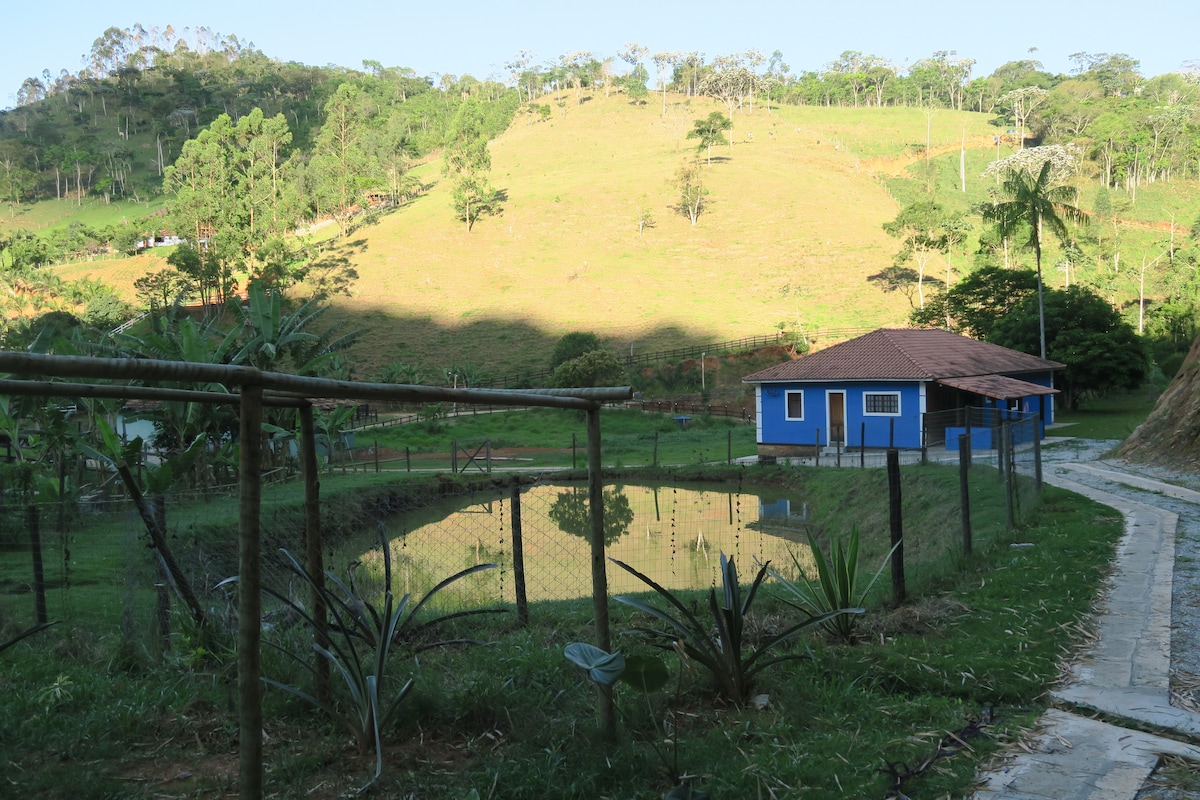 NATUREZA, CONFORTO E CONECTIVIDADE Melhor opção para quem busca paz, tranquilidade e contato com a natureza e animais na serra do RJ. Ideal para teletrabalho. A casa fica dentro de um sítio onde há açudes, produção de legumes, verduras e frutas e criação de animais e peixes. Duas Barras tem seu centro histórico tombado e é cercada por fazendas centenárias, cachoeiras e excelente gastronomia. As temperaturas variam entre 5-20° no inverno ou 15-30° no verão. Estadia mínima de 2 noites.