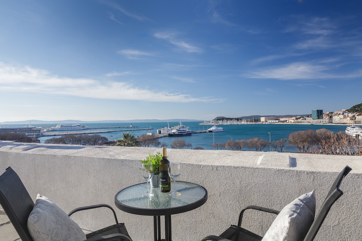 El pis està situat en una zona residencial tranquil·la i atractiva de Split. Es troba al costat sud del turó de Marjan, a només 5 minuts a peu del casc antic, del palau de Diocleciano i del passeig principal de la ciutat de Riva, on pots trobar tots els restaurants, bars, botigues i oci nocturn. A 20 minuts a peu del port de transbordadors i de la principal terminal d'autobusos. Una gran terrassa dóna a la mar, les illes, el port esportiu i el casc antic. Només pots seure i relaxar-te, veient vaixells sortint i sortint del port.
