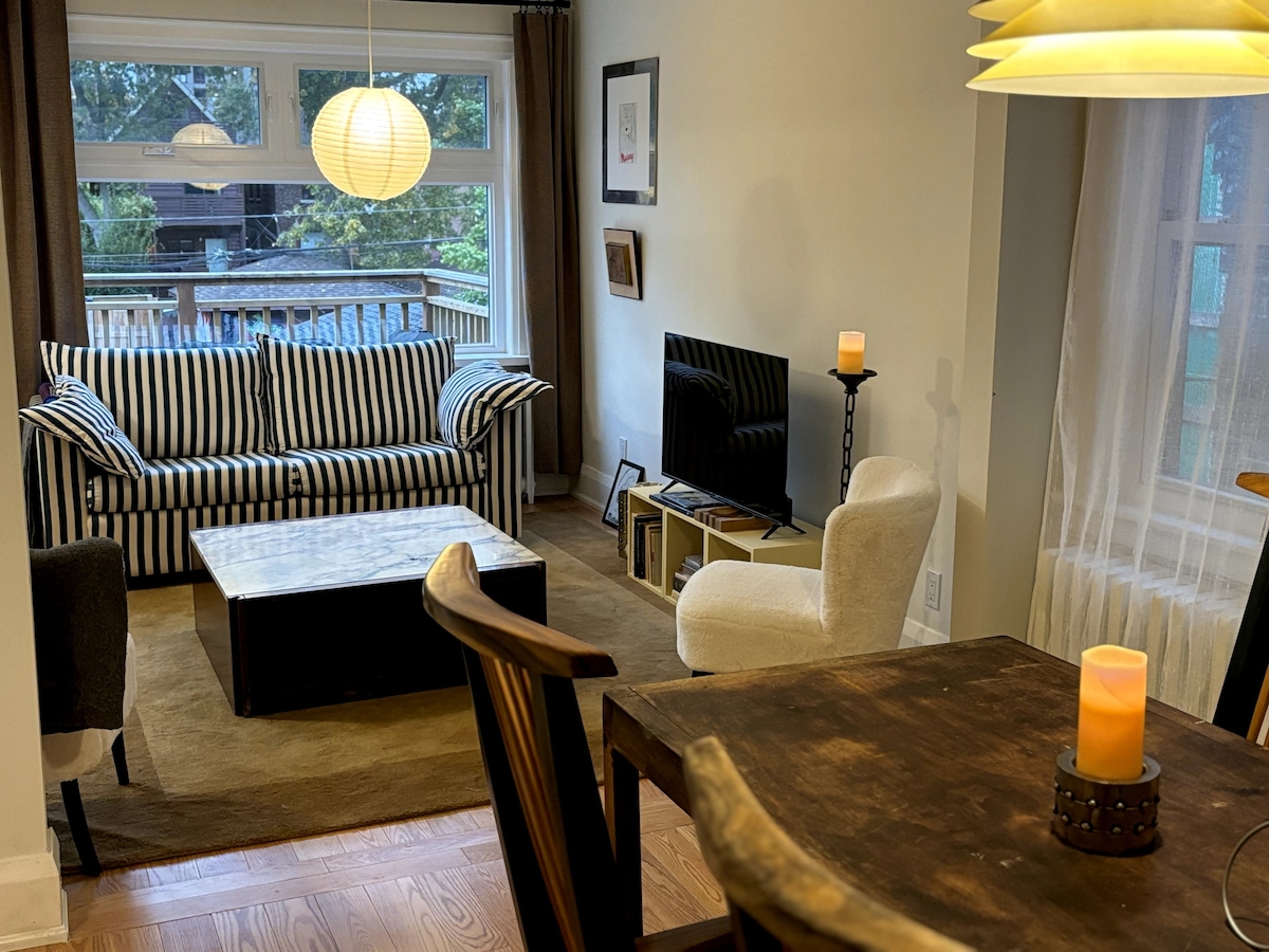 This stylish suite is ideal for couples, a small family, solo guests and business travellers. Nestled in the heart of vibrant Bloordale, my suite gives you a direct tap into the pulsing beat of the city. Explore our diverse neighbourhood and enjoy the cool vibe that is a mix of grungy, artsy, hip, trendy, and eclectic. Hop on a subway and explore Toronto - the subway is literally below the unit! Please note slight noise/rumbling from the subway below the unit and street noise.