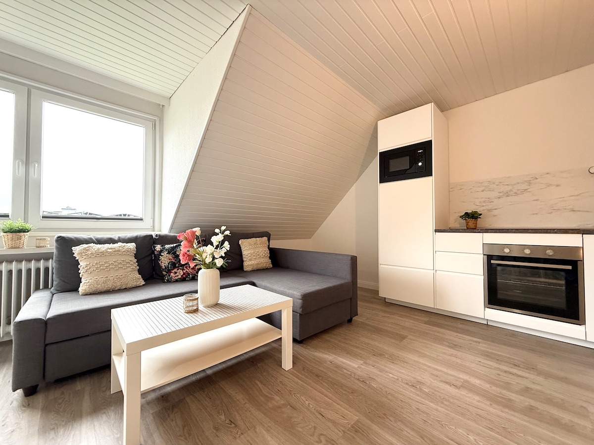 Perfecte per treballar a distància o per a unes vacances en parella acollidora. Els gossos SÓN BENVINGUTS! Apartament àtic tranquil i modern amb vistes al mar (o depenent de la marea amb una vista meravellosa del watt) a Cuxhaven Duhnen incl. Wifi d'alta velocitat (perfecte per a aquells que volen gaudir de boniques nits de Netflix (Smart TV) o treballar des d'aquí). A només 150 metres de la platja, les flors i l'aigua, i tan a prop hi ha restaurants fantàstics, una pastisseria i gelateries.