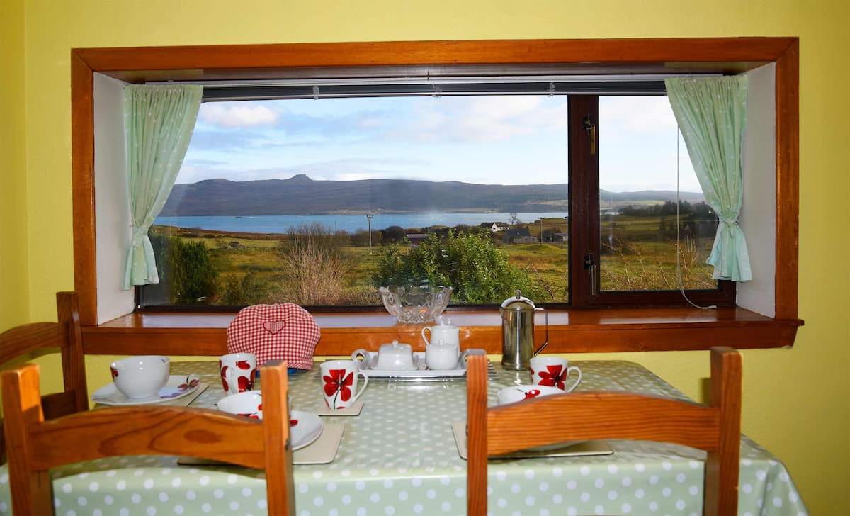 T'oferim una planificació de vacances personalitzada amb la teva estada. Et guiarem cap a experiències inoblidables, sovint passades per alt a l'illa. La nostra sala d'estar lluminosa i espaiosa ofereix unes vistes impressionants del paisatge. A només 5 minuts a peu del centre de la ciutat, els millors pubs, restaurants i música en directe estan al teu abast. Els viatges en vaixell locals, la fauna salvatge i la cascada Scorryfalls estan a un passeig. Relaxa't amb la banda ampla superràpida, un televisor de 50", Netflix i un altaveu Sonos. No trobaràs una millor experiència Skye.