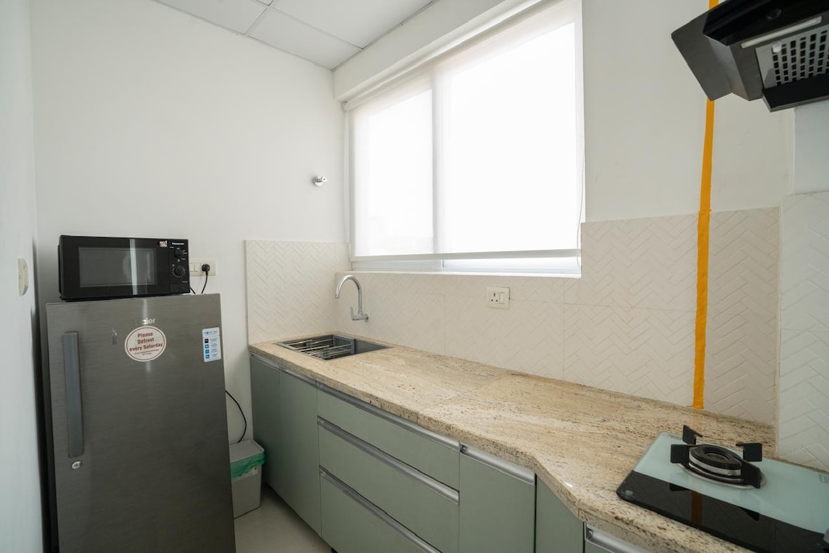 Et donem la benvinguda al nostre encantador apartament de 1200 metres quadrats de 2BHK, al cor del bulliciós centre informàtic. La ubicació és privilegiada, enmig de tota l'acció informàtica de la ciutat, a menys d'un quilòmetre de l'estació de metro, i un munt de restaurants i mercats vibrants a la porta de casa teva. L'apartament està equipat amb serveis moderns. Des d'un televisor intel·ligent fins a internet d'alta velocitat, un pany intel·ligent, una cuina ben equipada, llits còmodes amb un matalàs de qualitat, aire condicionat als dormitoris i a la sala d'estar, la rentadora, ho tenim tot cobert.
