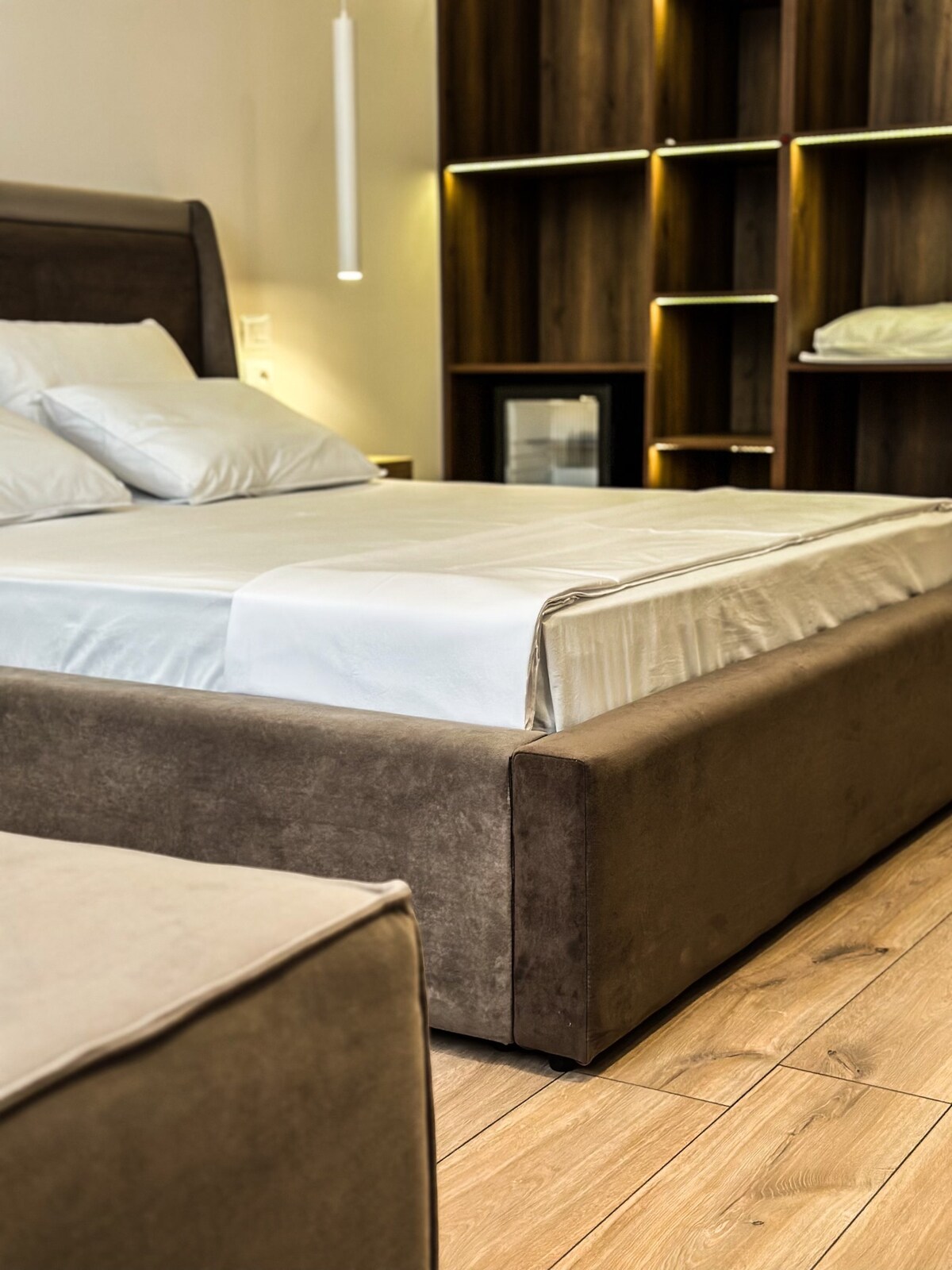 Presentem la nostra luxosa habitació d'hotel 201, situada a 2 minuts de l'antic basar de Kruja i del centre de la ciutat. Situat a la tercera planta, aquest modern oasi ofereix un jacuzzi i unes vistes impressionants de la ciutat. Gaudeix de la zona amb un armari obert i un televisor intel·ligent amb Netflix per a les teves necessitats d'entreteniment. Et trobaràs a pocs minuts del castell històric de Kruja i envoltat d'una gran quantitat d'opcions gastronòmiques, cafeteries, botigues, caixers automàtics, fleques, serveis de canvi de divises, farmàcies i botigues de records.