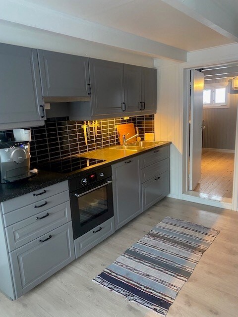 It's origins hidden in the unknown of history, this compact and cozy cabin was purposed as a post office and general store from the 1870s. Several details from this era have been kept, like its' original timber walls and ceiling. The cabin is on our beautiful Island of Stavøy, with lots of options for outdoors activities and in particular, fishing. If you are lucky, you might even be a part of the traditional wild salmon fishing every summer. Welcome!