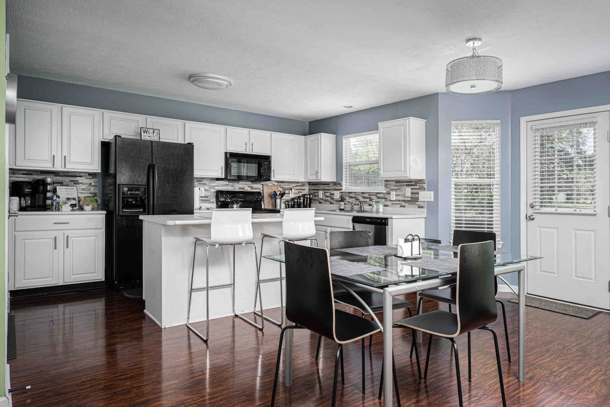 un allotjament perfecte per a tots els esdeveniments d'Indy! Tot el grup gaudirà d'un fàcil accés a tot des d'aquest lloc cèntric. CAMINA fins a la pista! Dos llits «KING size»! Aparcament fora de carrer! Bicicletes disponibles per als caps de setmana! (sol·licita-ho) Disposició oberta per gaudir dels teus companys de viatge. Una oportunitat meravellosa a un preu fantàstic. A prop del Centre de convencions i de tot el centre d'Indy també! L'aeroport és a 12 minuts. No hi ha gats ni animals d'altres tipus, al costat dels gossos.