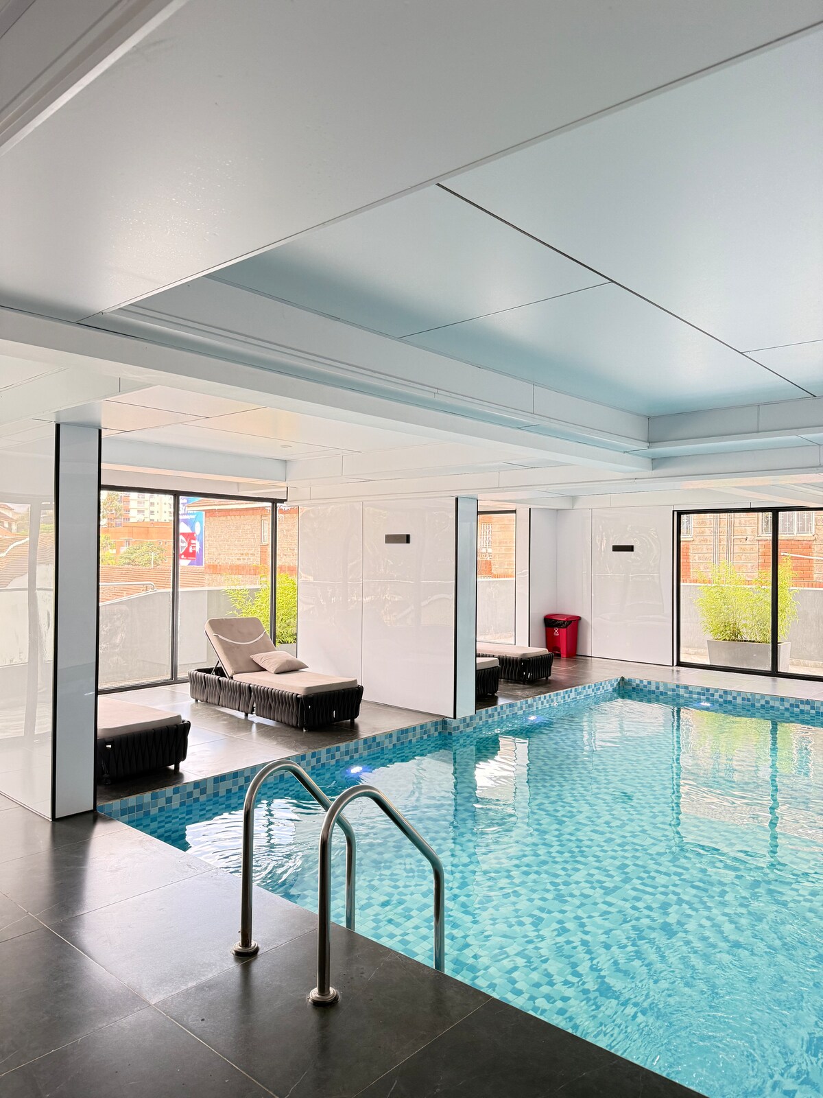 Aquest lloc únic té un estil propi. Aquest apartament de luxe i espaiós té una ubicació ideal als luxosos suburbis de Westlands, amb una gran varietat de restaurants, escoles, centres comercials, hospitals i llocs d'entreteniment en un radi de 3 km. Disposa de piscina climatitzada, sistemes de seguretat intel·ligents, ascensors, generador de còpia de seguretat per a zones comunes, gimnàs al terrat, servei de neteja, serveis de bugaderia, conserge, internet d'alta velocitat, televisors intel·ligents de 55 polzades, llit de gran mida, pati preciós.