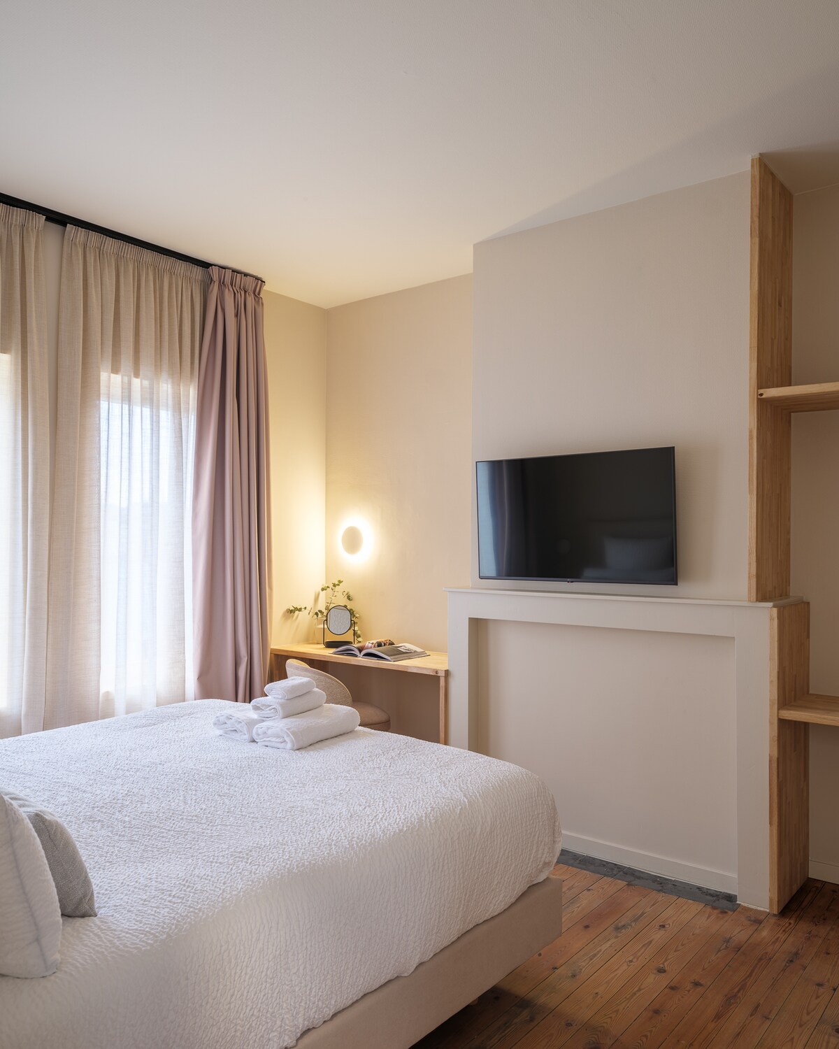 Estada encantadora en un edifici modernista a Eeklo. Gaudeix de l'elegància d'un hotel històric on l'arquitectura modernista atemporal es combina amb el confort modern. Les nostres habitacions confortables al 2n pis (accessibles per escales) ofereixen tot el que necessites per a una estada agradable. Cada habitació disposa d'un llit «queen size» i un bany amb dutxa. A més, cada habitació porta el nom d'un artista diferent, cosa que afegeix un toc d'inspiració artística a l'estada.