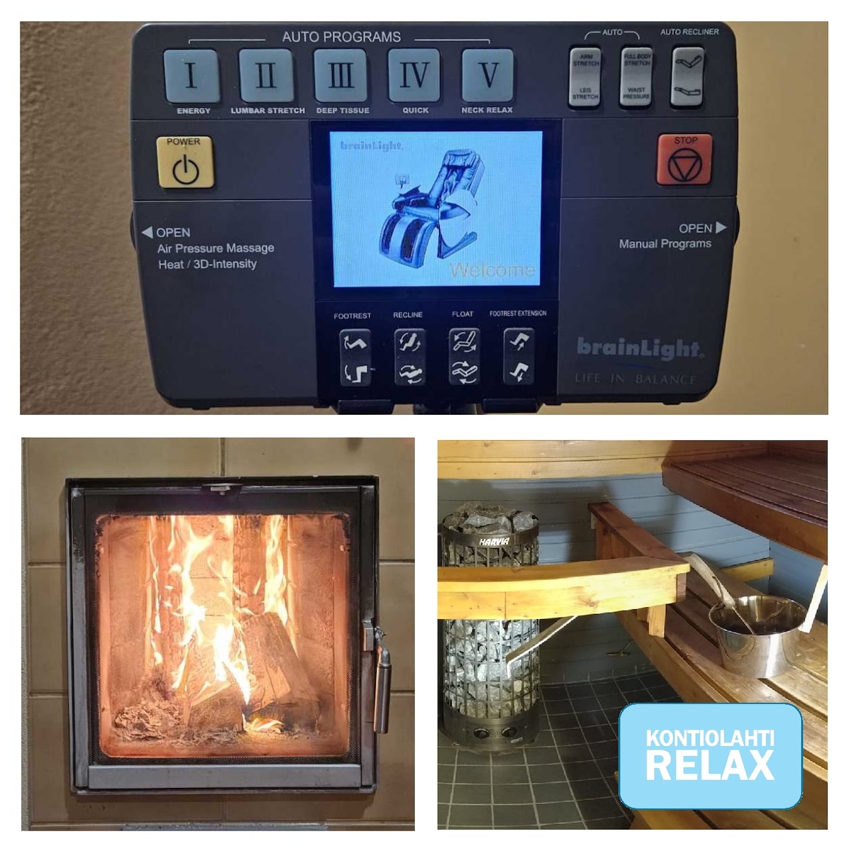 Täällä rentoudut hierovassa Brainlight 3D Float tuolissa istuen. Takan loimut luo illalla tunnelmaa. Saunasta pääsee vilvoittelemaan katetulle takaterassille. Tarjoamme vieraille kahvit sekä teet ja keittiöstä löytyy tarvittavat välineet ruuan laittoon. Autopaikkoja on yksi tolppapaikka sekä toinen asunnon edessä. Sänkyjä on 1 kpl 200x200cm (King size) 1 kpl 160x200cm (Queen size) 1 kpl 160x200cm ilmapatja tarvittaessa 1 kpl pinnasänky tarvittessa Kysy myös vuokra-autoa
