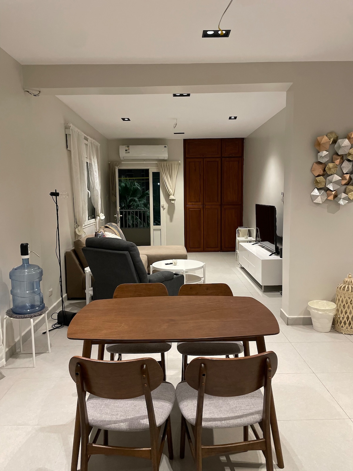 Gaudeix d'una estada còmoda en un pis elegant amb unes vistes impressionants del llac. Té un dormitori espaiós amb un gran finestral i llum natural, i una televisió intel·ligent amb subscripcions a Netflix i Shahid. El saló també té seients còmodes i un altre televisor intel·ligent per a més entreteniment. La cuina està totalment equipada amb tot el que necessites: microones, cafetera, nevera, tetera i rentadora. Per als amants de l'entreteniment, hi ha una sala de jocs amb una taula de futbolí per a amics i familiars. L'apartament és lluminós, tranquil i perfecte per descansar o treballar, amb un disseny modern i total privacitat.